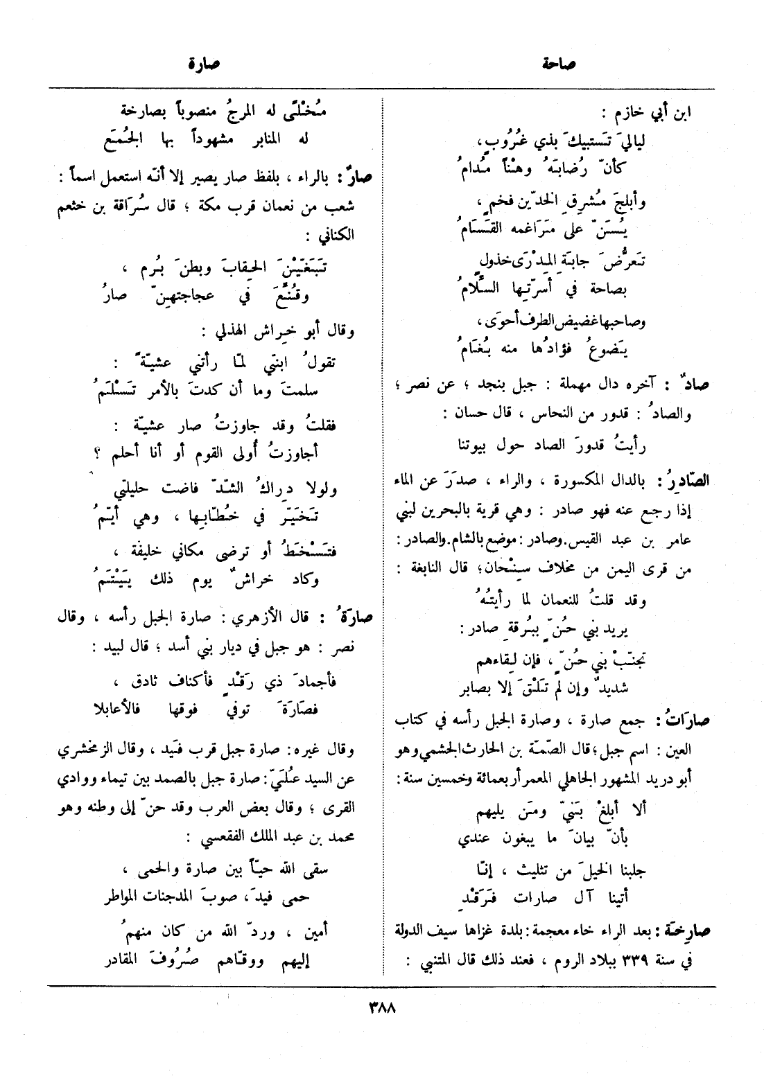جمع صارة، وصارة الجبل رأسه في كتاب العين: اسم جبل، قال الصّمّة بن الحارث الجشمي وهو أبو دريد المشهور الجاهلي المعمر أربعمائة وخمسين سنة: