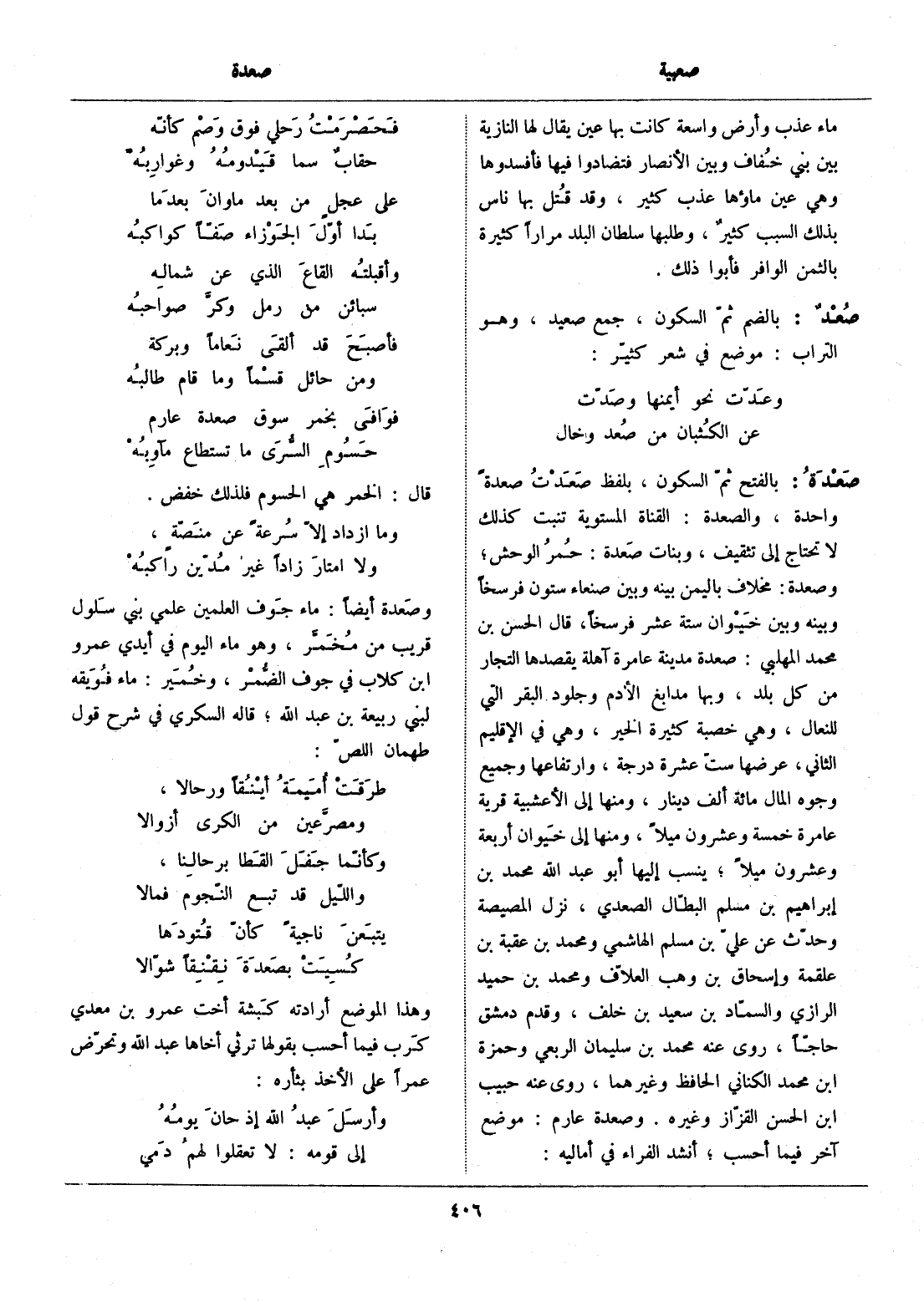 بالفتح ثمّ السكون، بلفظ صعدت صعدة واحدة، والصعدة: القناة المستوية تنبت كذلك لا تحتاج إلى تثقيف، وبنات صعدة: حمر الوحش، وصعدة: مخلاف باليمن بينه وبين صنعاء ستون فرسخا وبينه وبين خيوان ستة عشر فرسخا، قال الحسن بن محمد المهلبي: صعدة مدينة عامرة آهلة يقصدها التجار من كل بلد، وبها مدابغ الأدم وجلود البقر التي للنعال، وهي خصبة كثيرة الخير، وهي في الإقليم الثاني، عرضها ستّ عشرة درجة، وارتفاعها وجميع وجوه المال مائة ألف دينار، ومنها إلى الأعشبية قرية عامرة خمسة وعشرون ميلا، ومنها إلى خيوان أربعة وعشرون ميلا، ينسب إليها أبو عبد الله محمد بن إبراهيم بن مسلم البطّال الصعدي، نزل المصيصة وحدّث عن عليّ بن مسلم الهاشمي ومحمد بن عقبة بن علقمة وإسحاق بن وهب العلّاف ومحمد بن حميد الرازي والسمّاد بن سعيد بن خلف، وقدم دمشق حاجّا، روى عنه محمد بن سليمان الربعي وحمزة ابن محمد الكناني الحافظ وغيرهما، روى عنه حبيب ابن الحسن القزّاز وغيره. وصعدة عارم: موضع آخر فيما أحسب، أنشد الفراء في أماليه: