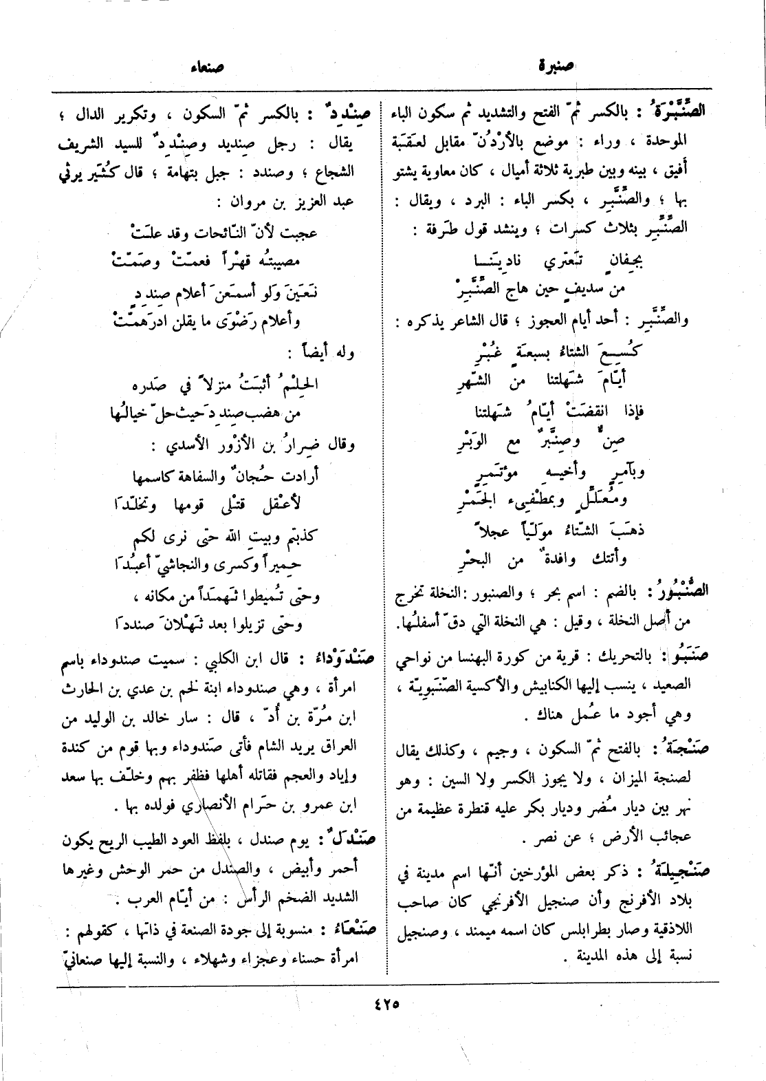 الصّنّبر بثلاث كسرات، وينشد قول طرفة: