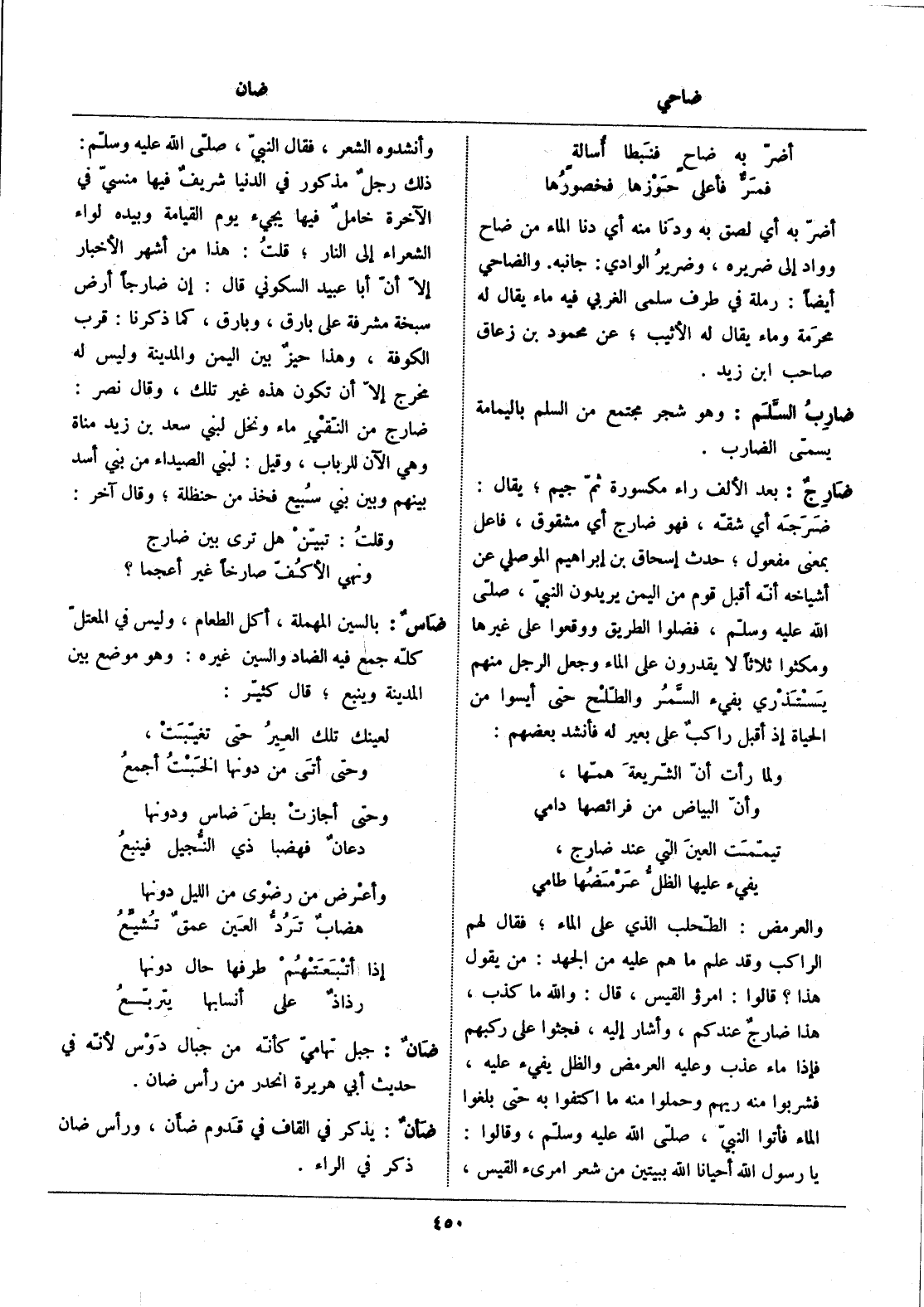 ضرجه أي شقّه، فهو ضارج أي مشقوق، فاعل بمعنى مفعول، حدث إسحاق بن إبراهيم الموصلي عن أشياخه أنّه أقبل قوم من اليمن يريدون النبيّ، صلّى الله عليه وسلّم، فضلوا الطريق ووقعوا على غيرها ومكثوا ثلاثا لا يقدرون على الماء وجعل الرجل منهم يستذري بفيء السّمر والطّلح حتى أيسوا من الحياة إذ أقبل راكب على بعير له فأنشد بعضهم: