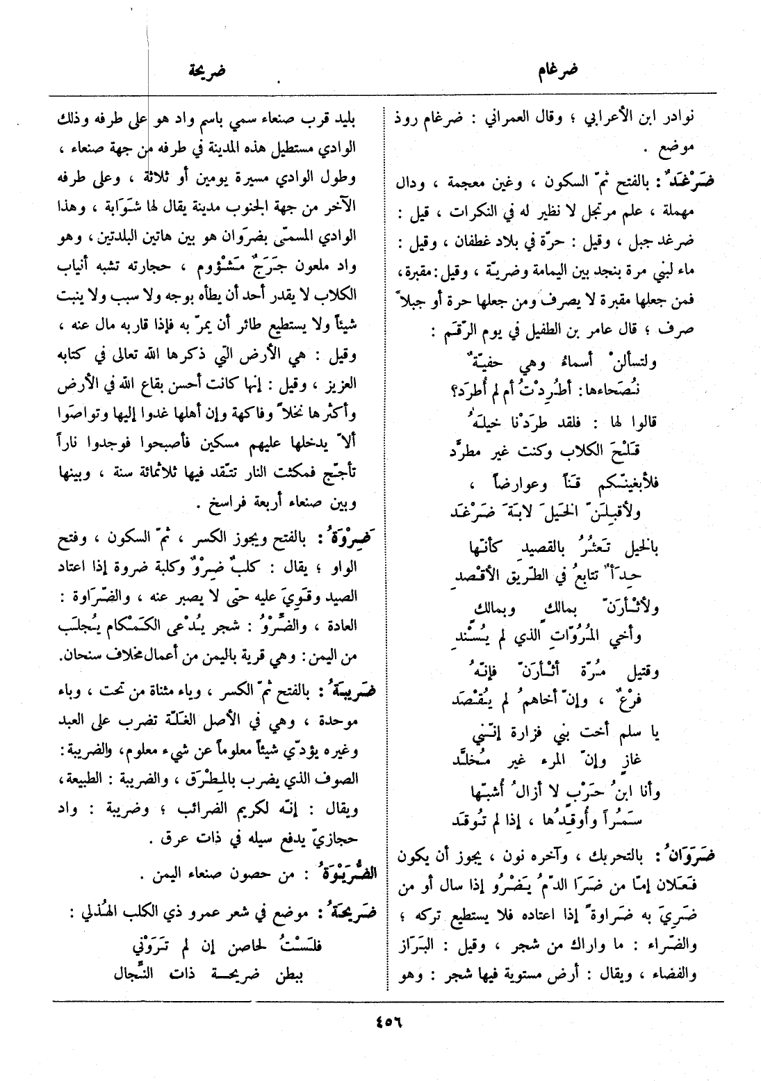 العادة، والضّرو: شجر يدعى الكمكام يجلب من اليمن: وهي قرية باليمن من أعمال مخلاف سنحان.