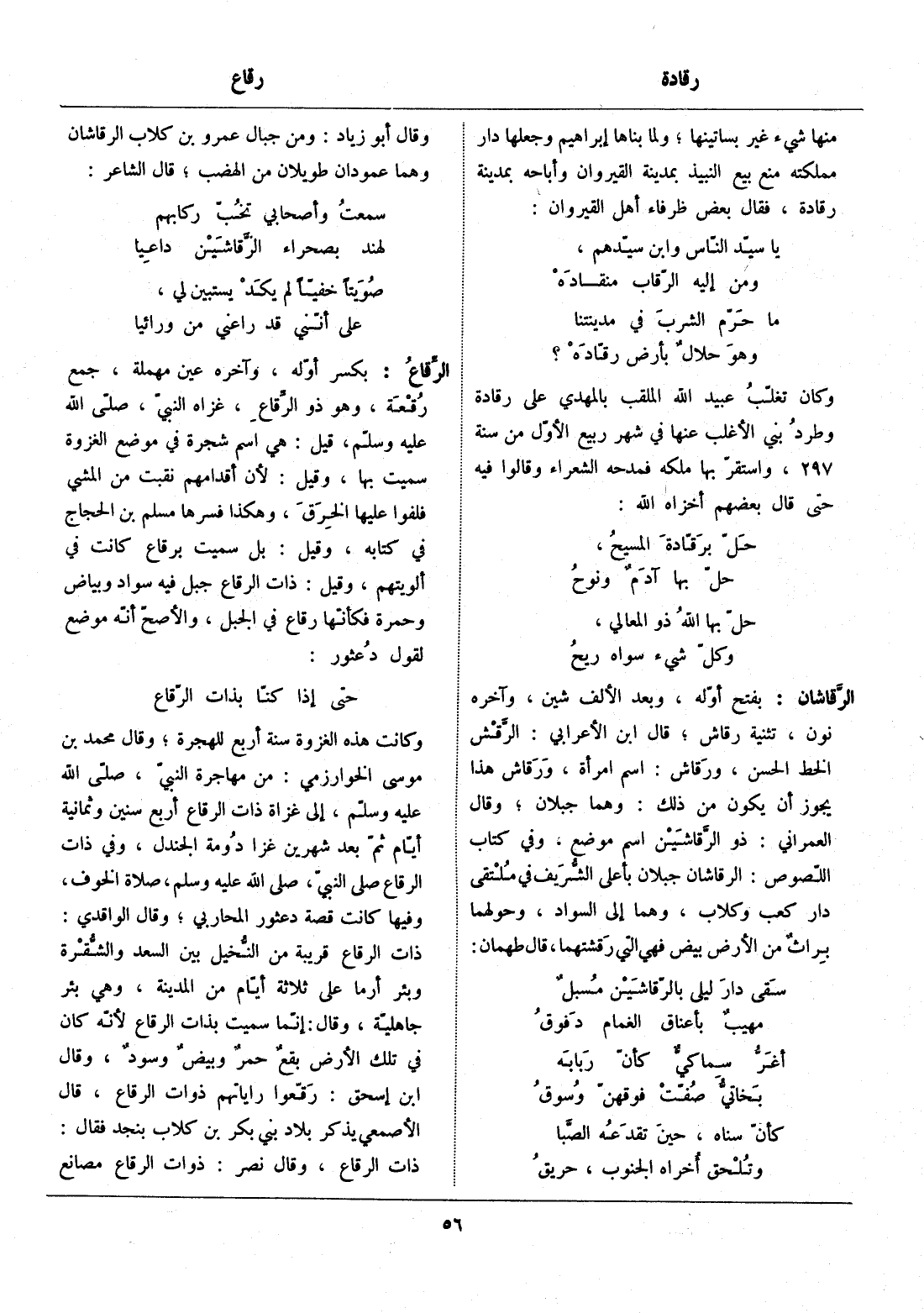 وقال أبو زياد: ومن جبال عمرو بن كلاب الرقاشان وهما عمودان طويلان من الهضب، قال الشاعر: