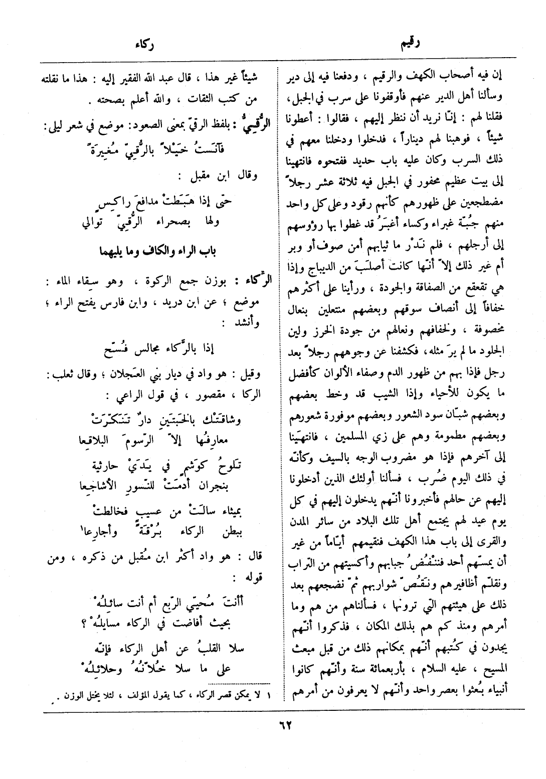 [1] لا يمكن قصر الركاء، كما يقول المؤلف، لئلا يختل الوزن.