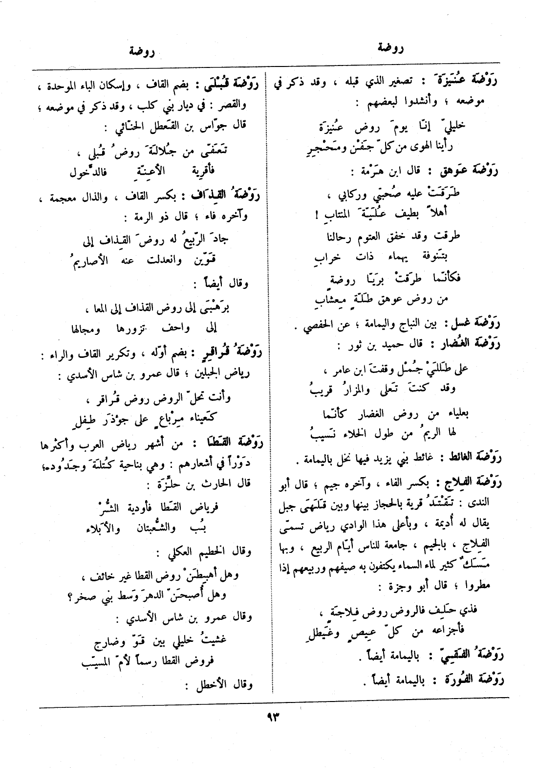 من أشهر رياض العرب وأكثرها دورا في أشعارهم: وهي بناحية كتلة وجدود، قال الحارث بن حلّزة:
