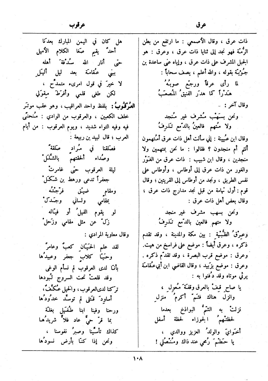 يا صاح قف بالعرق وقفة معول، ... وانزل هناك فثمّ أكرم منزل