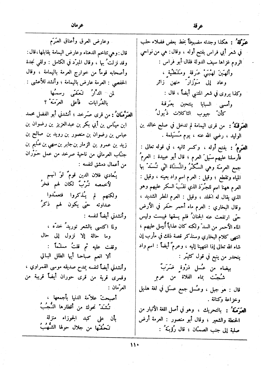 من قرى صرخد، أنشدني أبو الفضل محمد ابن ميّاس بن أبي بكر بن عبد العزيز بن رضوان بن عباس بن رضوان بن منصور بن رويد بن صالح بن زيد بن عمرو بن الزمار بن جابر بن سهي بن عليم بن جنّاب العرماني من ناحية صرخد من عمل حوران من أعمال دمشق لنفسه:
