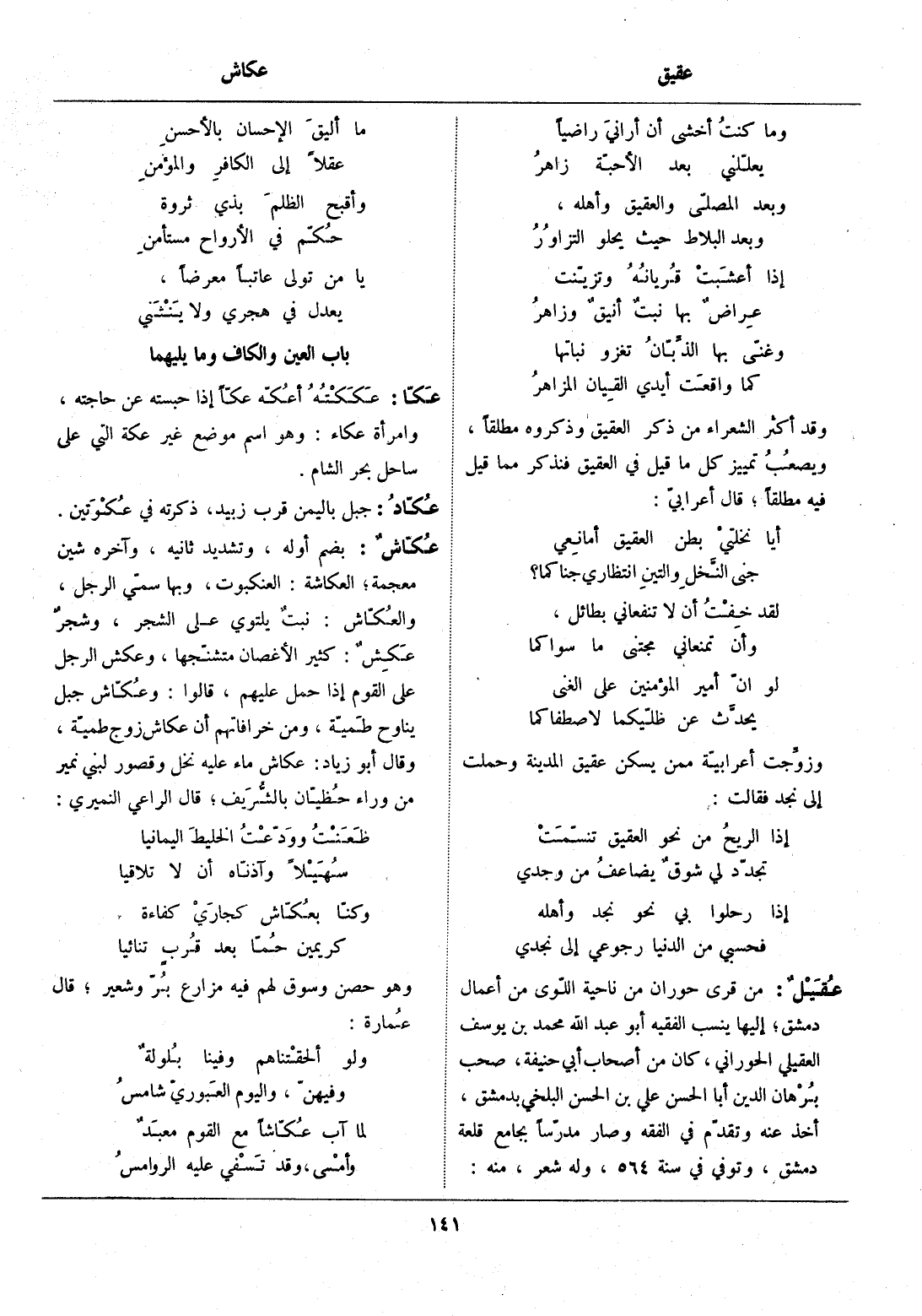 من قرى حوران من ناحية اللّوى من أعمال دمشق، إليها ينسب الفقيه أبو عبد الله محمد بن يوسف العقيلي الحوراني، كان من أصحاب أبي حنيفة، صحب برهان الدين أبا الحسن علي بن الحسن البلخي بدمشق، أخذ عنه وتقدّم في الفقه وصار مدرّسا بجامع قلعة دمشق، وتوفي في سنة 564، وله شعر، منه: