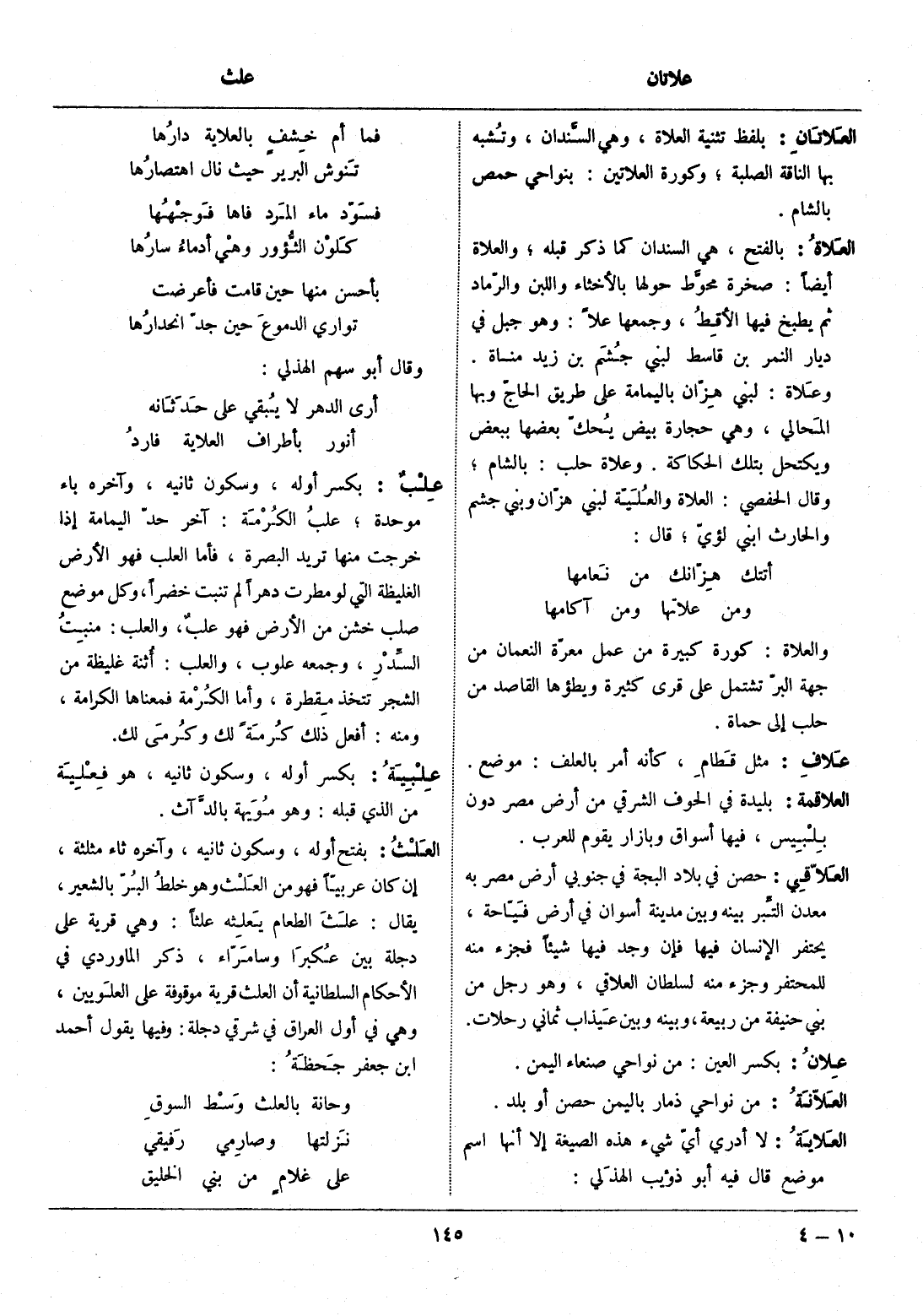 بلفظ تثنية العلاة، وهي السّندان، وتشبه بها الناقة الصلبة، وكورة العلاتين: بنواحي حمص بالشام.