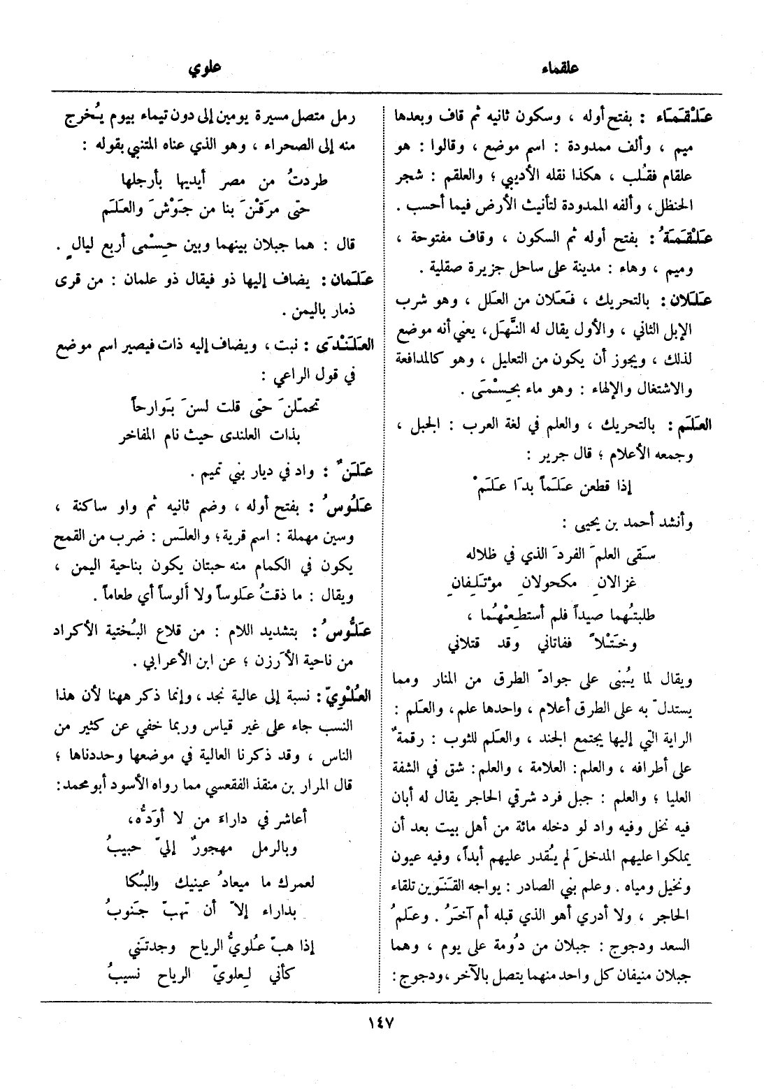 بفتح أوله، وسكون ثانيه ثم قاف وبعدها ميم، وألف ممدودة: اسم موضع، وقالوا: هو علقام فقلب، هكذا نقله الأديبي، والعلقم: شجر الحنظل، وألفه الممدودة لتأنيث الأرض فيما أحسب.
