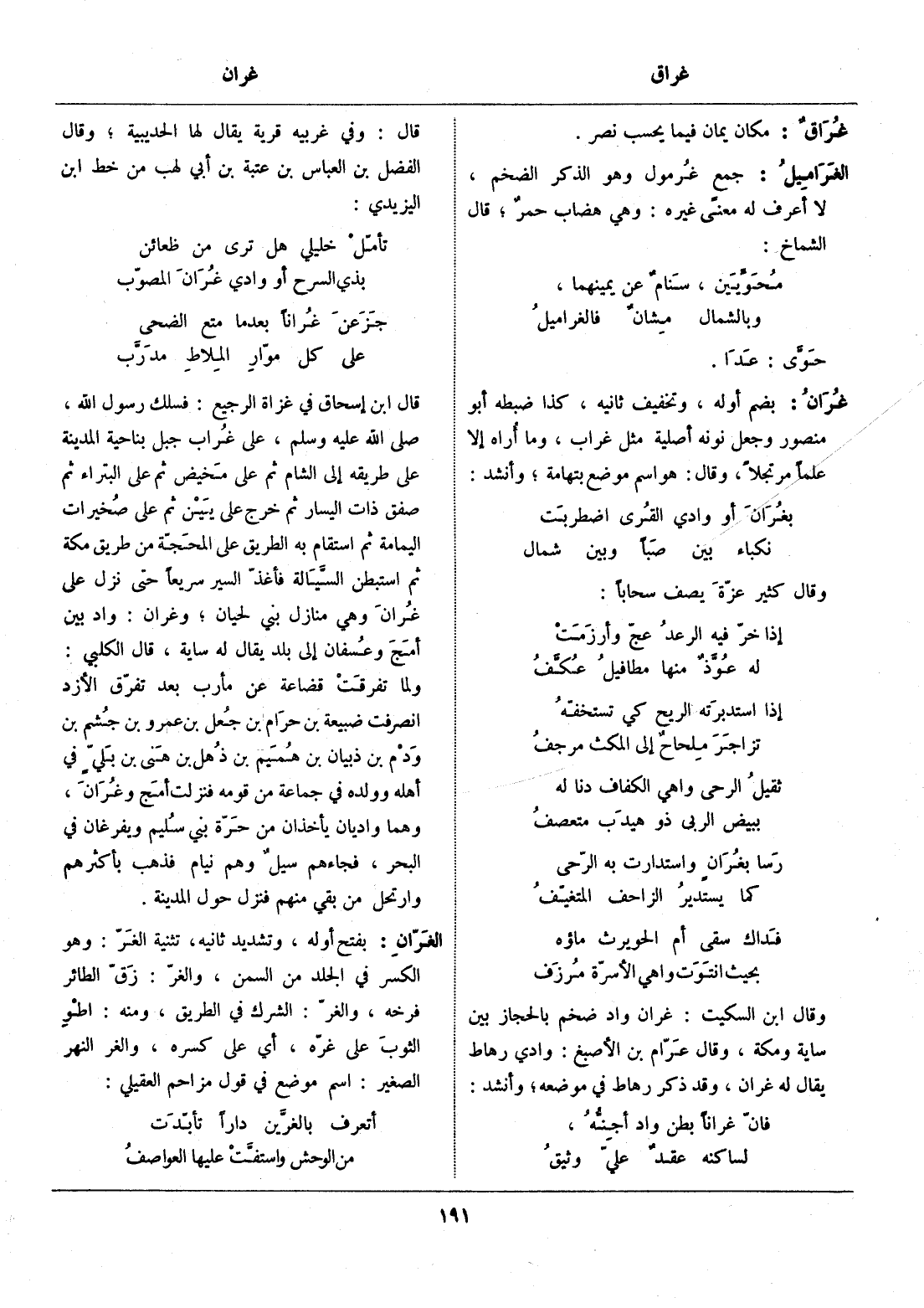 وقال ابن السكيت: غران واد ضخم بالحجاز بين ساية ومكة، وقال عرّام بن الأصبغ: وادي رهاط يقال له غران، وقد ذكر رهاط في موضعه، وأنشد: