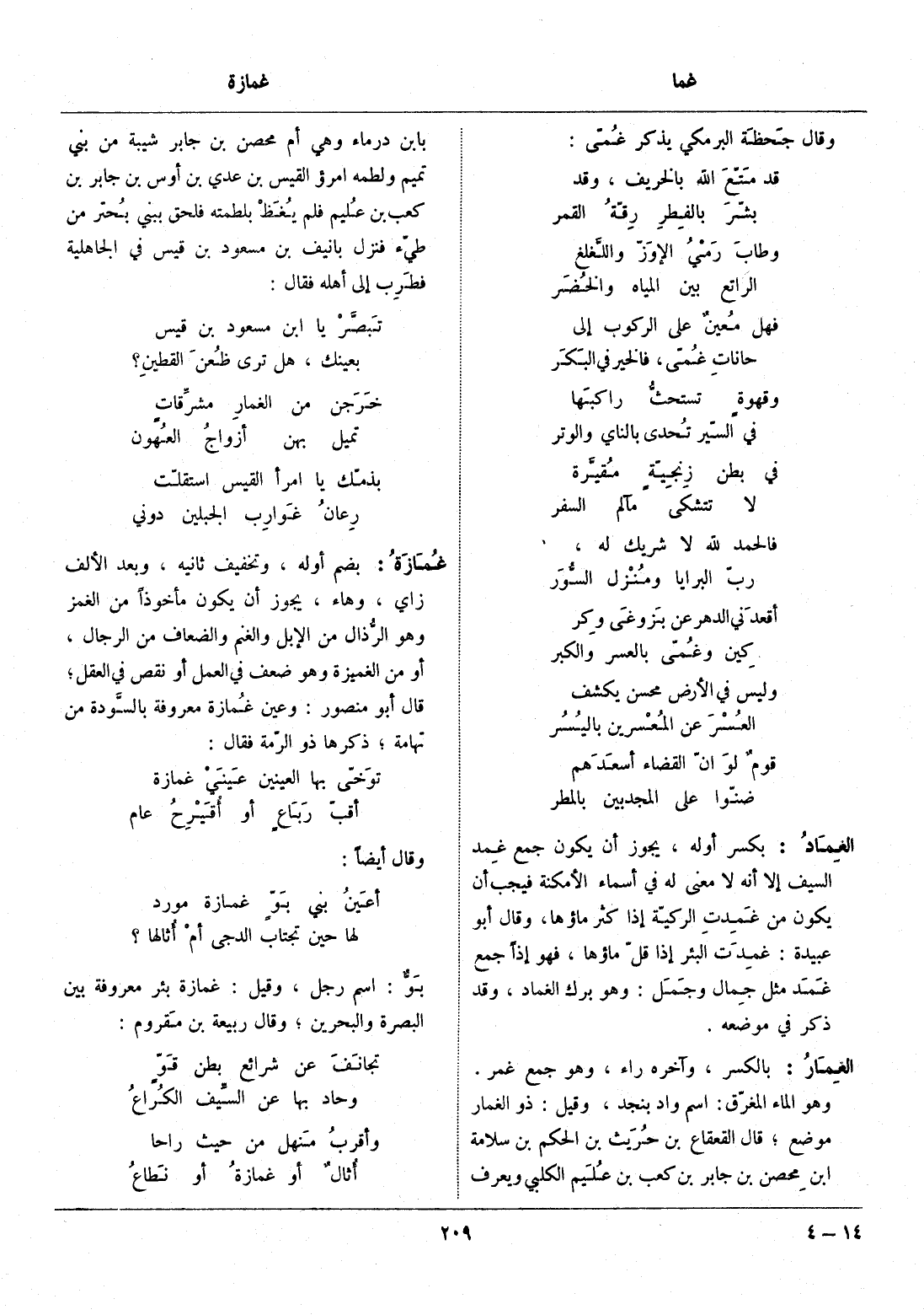 بضم أوله، وتخفيف ثانيه، وبعد الألف زاي، وهاء، يجوز أن يكون مأخوذا من الغمز وهو الرّذال من الإبل والغنم والضعاف من الرجال، أو من الغميزة وهو ضعف في العمل أو نقص في العقل، قال أبو منصور: وعين غمازة معروفة بالسّودة من تهامة، ذكرها ذو الرّمة فقال: