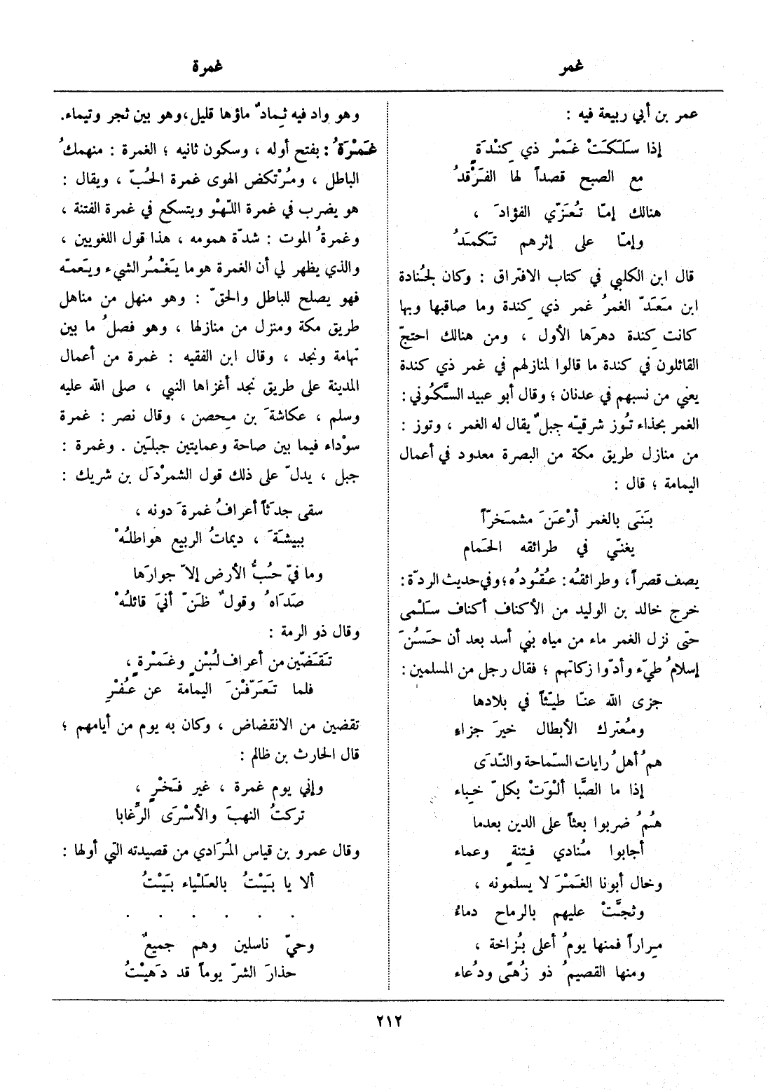 هو يضرب في غمرة اللهو ويتسكع في غمرة الفتنة، وغمرة الموت: شدّة همومه، هذا قول اللغويين، والذي يظهر لي أن الغمرة هو ما يغمر الشيء ويعمّه فهو يصلح للباطل والحقّ: وهو منهل من مناهل طريق مكة ومنزل من منازلها، وهو فصل ما بين تهامة ونجد، وقال ابن الفقيه: غمرة من أعمال المدينة على طريق نجد أغزاها النبي، صلى الله عليه وسلم، عكاشة بن محصن، وقال نصر: غمرة سوداء فيما بين صاحة وعمايتين جبلين. وغمرة: