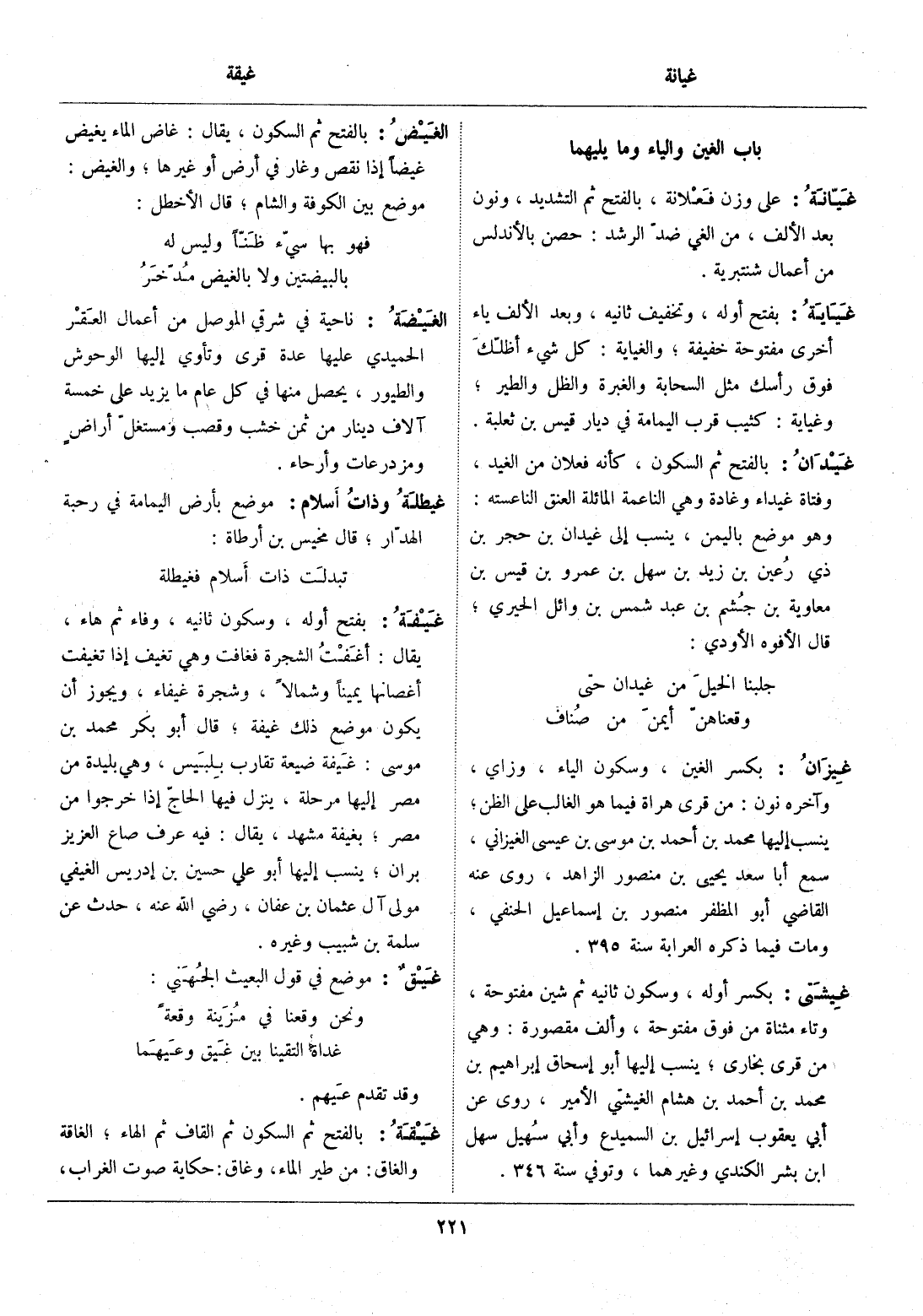 باب الغين والياء وما يليهما