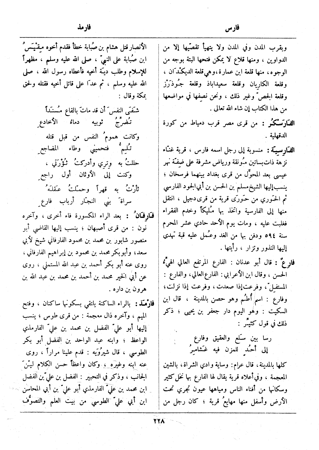 بالراء الساكنة يلتقي بسكونها ساكنان، وفتح الميم، وآخره ذال معجمة: من قرى طوس، ينسب إليها أبو عليّ الفضل بن محمد بن عليّ الفارمذي الواعظ، وابنه عبد الواحد بن الفضل أبو بكر الطوسي، قال شيرويه: قدم علينا مرارا، روى عنه ابنه وغيره، وكان واعظا حسن الكلام ليّن الجانب، وذكر في التحبير: الفضل بن عليّ بن الفضل ابن محمد بن عليّ الفارمذي أبو عليّ بن أبي المحاسن ابن أبي علىّ الطوسي من بيت العلم والتصوّف