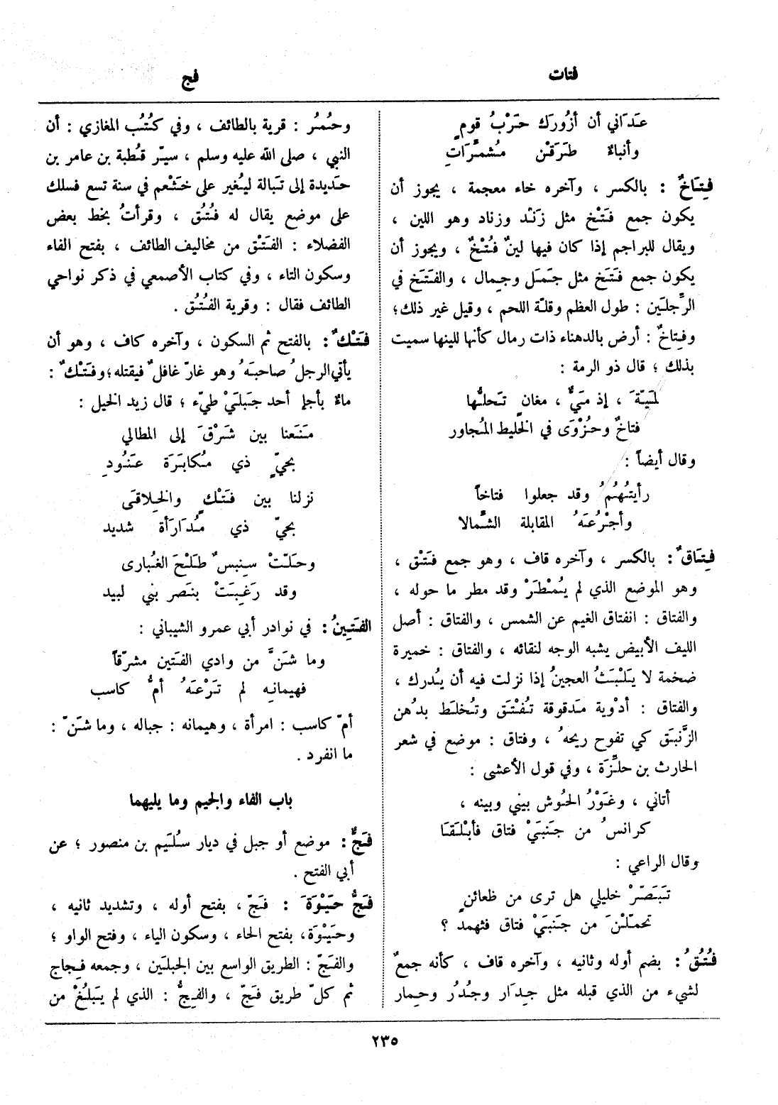 بضم أوله وثانيه، وآخره قاف، كأنه جمع لشيء من الذي قبله مثل جدار وجدر وحمار وحمر: قرية بالطائف، وفي كتب المغازي: أن النبي، صلّى الله عليه وسلّم، سيّر قطبة بن عامر بن حديدة إلى تبالة ليغير على خثعم في سنة تسع فسلك على موضع يقال له فتق، وقرأت بخط بعض الفضلاء: الفتق من مخاليف الطائف، بفتح الفاء وسكون التاء، وفي كتاب الأصمعي في ذكر نواحي الطائف فقال: وقرية الفتق.