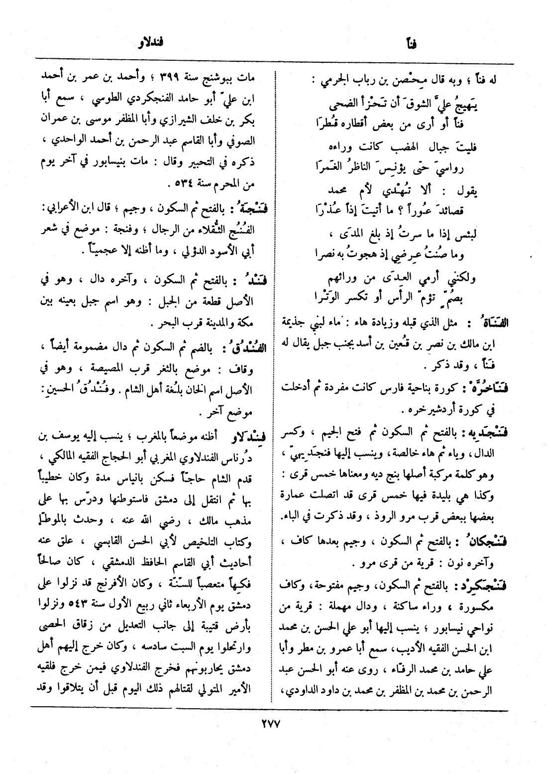 أظنه موضعا بالمغرب، ينسب إليه يوسف بن درناس الفندلاوي المغربي أبو الحجاج الفقيه المالكي، قدم الشام حاجّا فسكن بانياس مدة وكان خطيبا بها ثم انتقل إلى دمشق فاستوطنها ودرّس بها على مذهب مالك، رضي الله عنه، وحدث بالموطّإ وكتاب التلخيص لأبي الحسن القابسي، علق عنه أحاديث أبي القاسم الحافظ الدمشقي، كان صالحا فكها متعصبا للسّنّة، وكان الأفرنج قد نزلوا على دمشق يوم الأربعاء ثاني ربيع الأول سنة 543 ونزلوا بأرض قتيبة إلى جانب التعديل من زقاق الحصى وارتحلوا يوم السبت سادسه، وكان خرج إليهم أهل دمشق يحاربونهم فخرج الفندلاوي فيمن خرج فلقيه الأمير المتولي لقتالهم ذلك اليوم قبل أن يتلاقوا وقد
