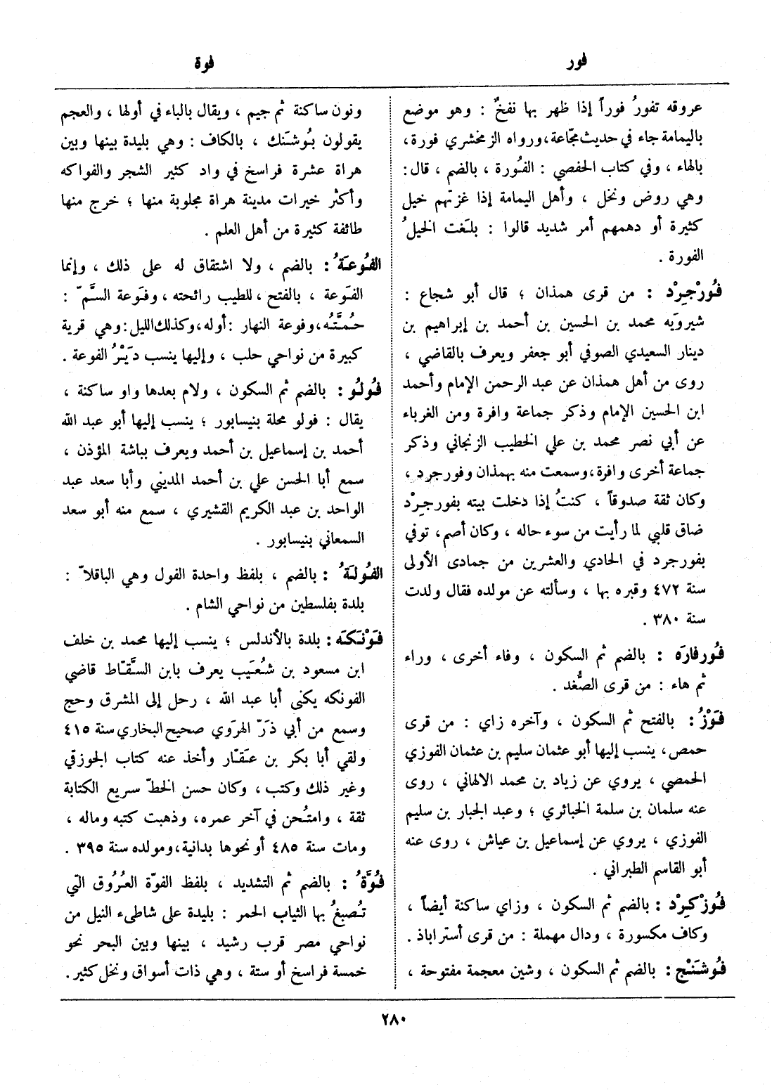 عروقه تفور فورا إذا ظهر بها نفخ: وهو موضع باليمامة جاء في حديث مجّاعة، ورواه الزمخشري فورة، بالهاء، وفي كتاب الحفصي: الفورة، بالضم، قال: