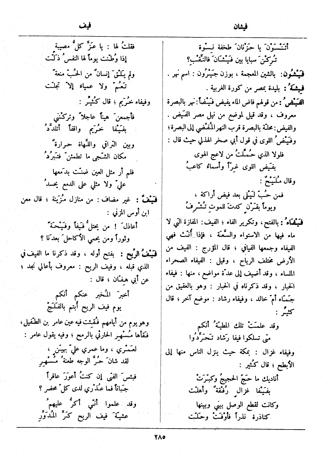 والفيض: محلّة بالبصرة قرب النهر المفضي إلى البصرة، وفيض اللوى في قول أبي صخر الهذلي حيث قال: