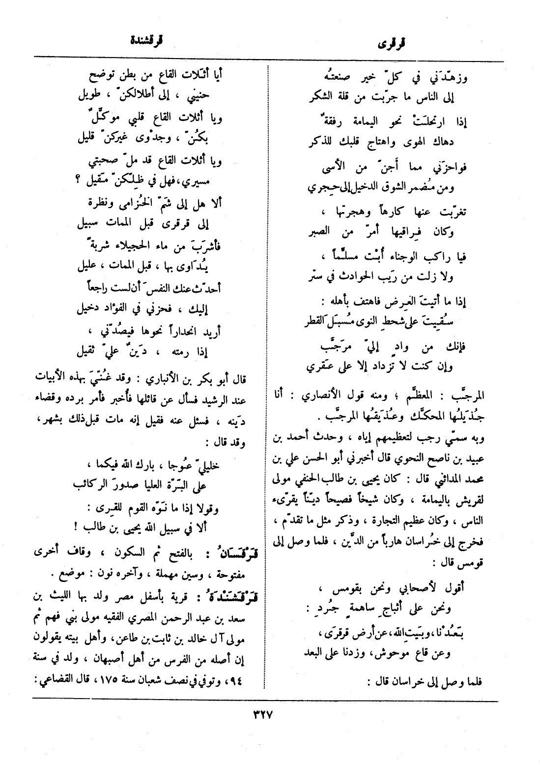 بعدنا، وبيت الله، عن أرض قرقرى، ... وعن قاع موحوش، وزدنا على البعد