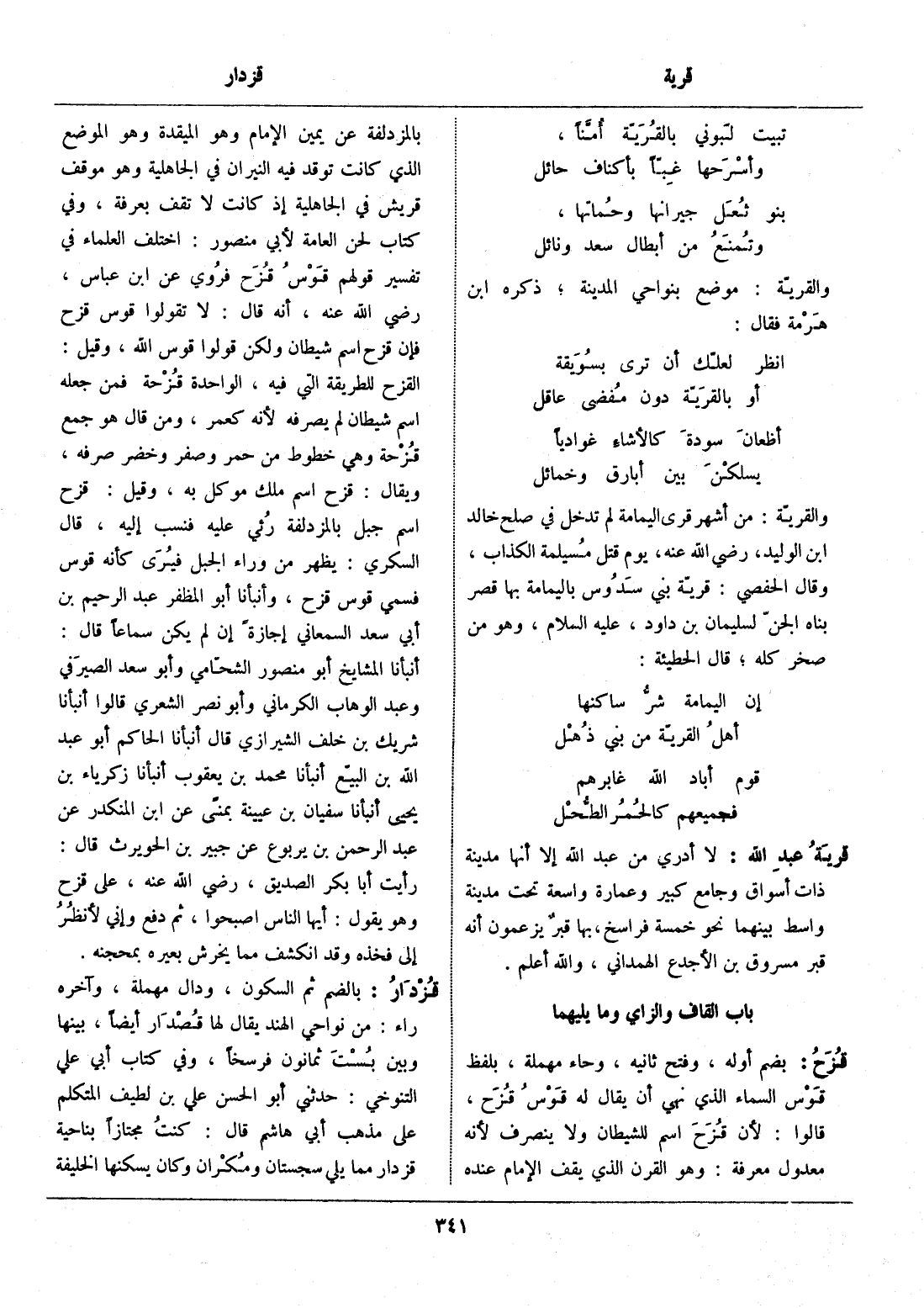 باب القاف والزاي وما يليهما
