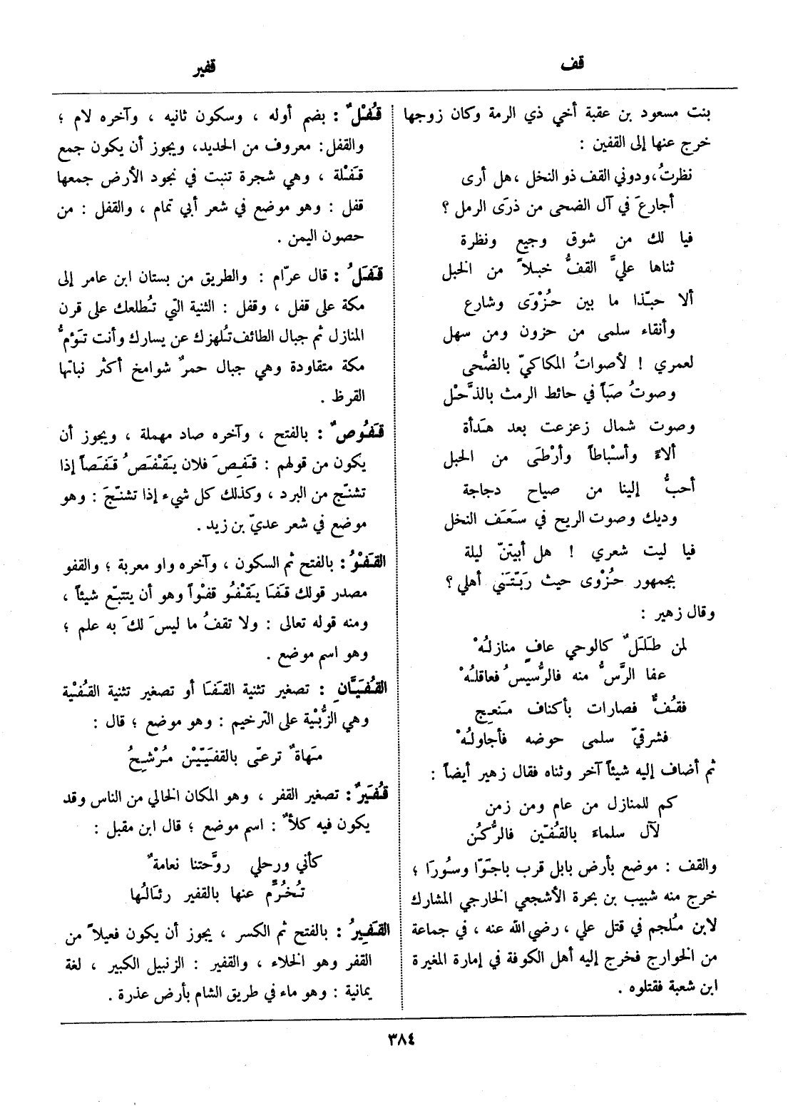 بضم أوله، وسكون ثانيه، وآخره لام، والقفل: معروف من الحديد، ويجوز أن يكون جمع قفلة، وهي شجرة تنبت في نجود الأرض جمعها قفل: وهو موضع في شعر أبي تمام، والقفل: من حصون اليمن.