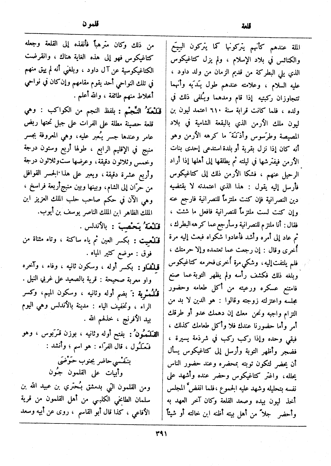 الملة عندهم كأنهم يتركونها كما يتركون البيع والكنائس في بلاد الإسلام، ولم يزل كتاغيكوس الذي يلي البطركة من قديم الزمان من ولد داود، عليه السلام، وعلامته عندهم طول يديه وأنهما تتجاوزان ركبتيه إذا قام ومدهما ويلفى ذلك في ولده، فلما كانت قرابة سنة 610 اعتمد ليون بن ليون ملك الأرمن الذي بالبقعة الشامية في بلاد المصيصة وطرسوس وأذنة ما كرهه الأرمن وهو أنه كان إذا نزل بقرية أو بلدة استدعى إحدى بنات الأرمن فيفترشها في ليلته ثم يطلقها إلى أهلها إذا أراد الرحيل عنهم، فشكا الأرمن ذلك إلى كتاغيكوس فأرسل إليه يقول: هذا الذي اعتمدته لا يقتضيه دين النصرانية فإن كنت ملتزما للنصرانية فارجع عنه وإن كنت لست ملتزما للنصرانية فافعل ما شئت، فقال: أنا ملتزم للنصرانية وسأرجع عما كرهه البطرك، ثم عاد إلى أمره وأشد فأعادوا شكواه فبعث إليه مرة أخرى وقال: إن رجعت عما تعتمده وإلا حرمتك، فلم يلتفت إليه، وشكي مرة أخرى فحرمه كتاغيكوس وبلغه ذلك فكشف رأسه ولم يظهر التوبة عما صنع فامتنع عسكره ورعيته من أكل طعامه وحضور مجلسه واعتزلته زوجته وقالوا: هو الدين لا بد من التزام واجبه ونحن معك إن دهمك عدو أو طرقك أمر وأما حضورنا عندك فلا وأكل طعامك كذلك، فبقي وحده وإذا ركب ركب في شرذمة يسيرة، فضجر وأظهر التوبة وأرسل إلى كتاغيكوس يسأل أن يحضر لتكون توبته بمحضره وعند حضور الناس يحلله، واغتر كتاغيكوس وحضر عنده وأشهد على نفسه بتحليله وشهد عليه الجموع، فلما انفضّ المجلس أخذ ليون بيده وصعد القلعة وكان آخر العهد به وأحضر رجلا من أهل بيته أظنه ابن خالته أو شيئا من ذلك وكان مترهبا فأنفذه إلى القلعة وجعله كتاغيكوس فهو إلى هذه الغاية هناك، وانقرضت الكتاغيكوسية عن آل داود، وبلغني أنه لم يبق منهم في تلك النواحي أحد يقوم مقامهم وإن كان في نواحي أخلاط منهم طائفة، والله أعلم.