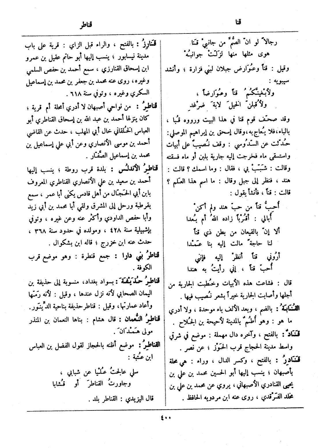 بلدة قرب روطة، ينسب إليها أحمد بن سعيد بن علي الأنصاري القناطري المعروف بابن أبي الحجّال من أهل قادس يكنى أبا عمر، سمع بقرطبة ورحل إلى المشرق ولقي أبا محمد بن أبي زيد وأبا حفص الداودي وأكثر عنه وعن غيره، وتوفي بإشبيلية سنة 428، ومولده في حدود سنة 368، حدث عنه ابن خزرج، قاله ابن بشكوال.