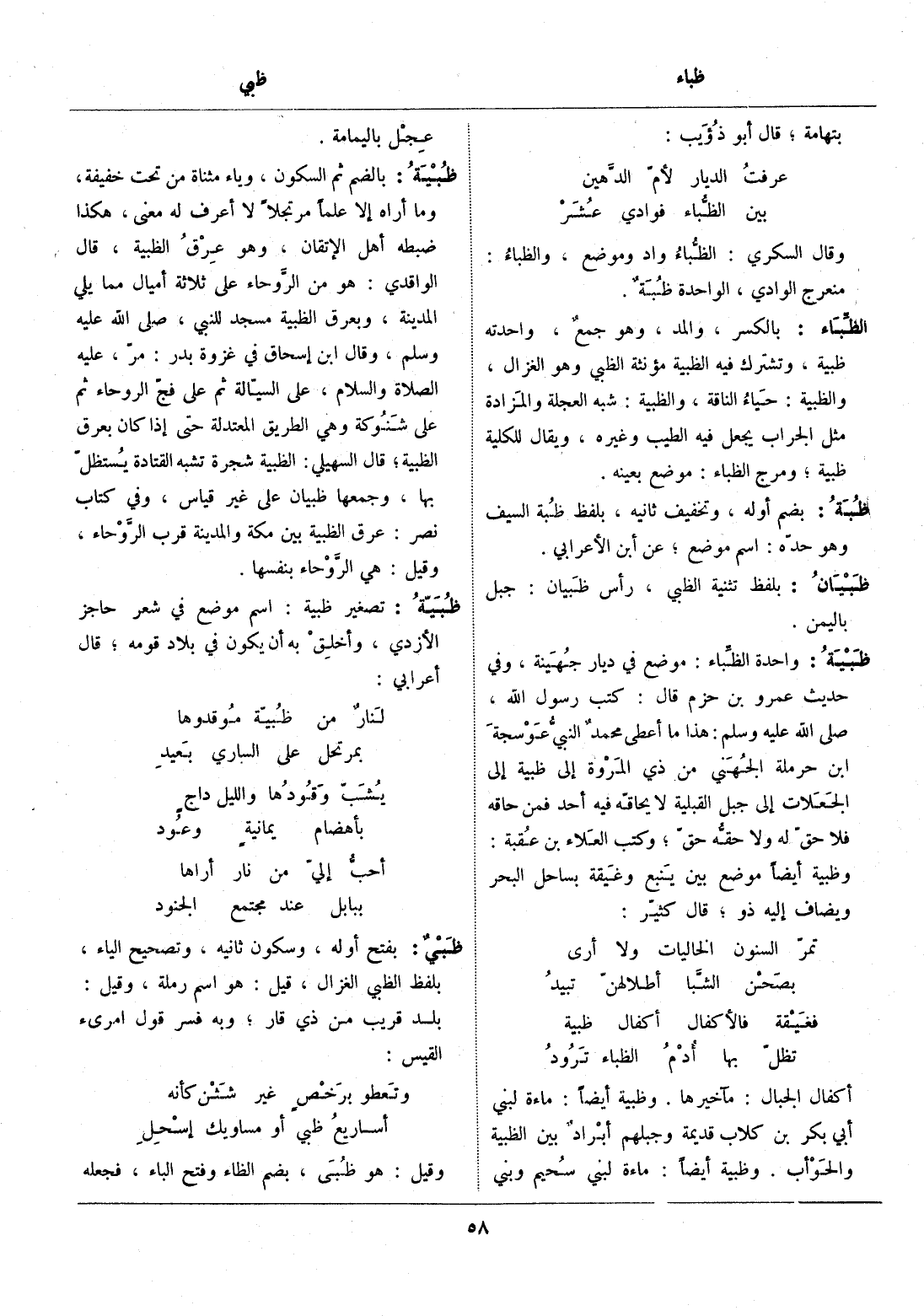 وقال السكري: الظّباء واد وموضع، والظباء:
