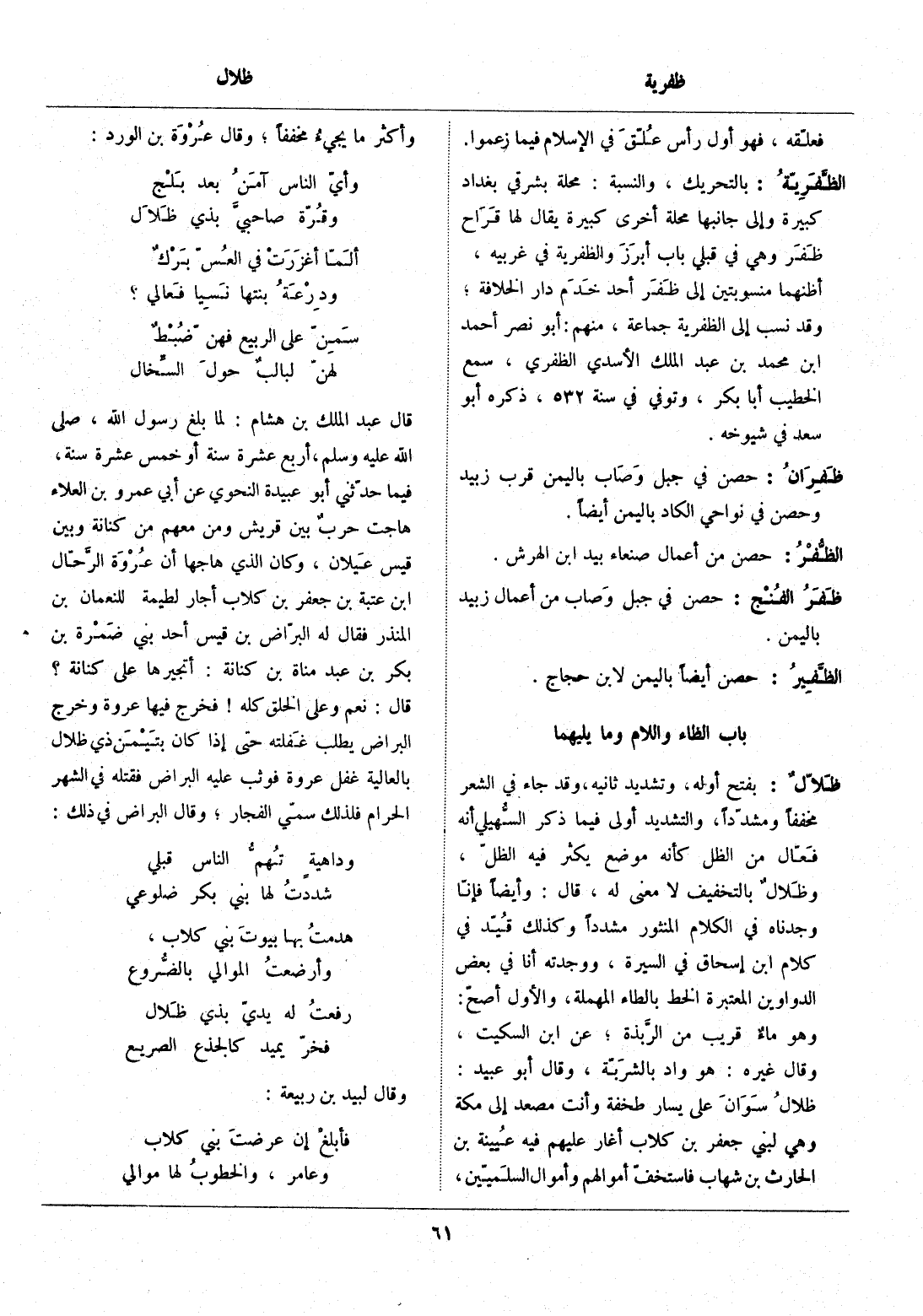 بفتح أوله، وتشديد ثانيه، وقد جاء في الشعر مخففا ومشدّدا، والتشديد أولى فيما ذكر السّهيلي أنه فعّال من الظل كأنه موضع يكثر فيه الظلّ، وظلال بالتخفيف لا معنى له، قال: وأيضا فإنّا وجدناه في الكلام المنثور مشددا وكذلك قيّد في كلام ابن إسحاق في السيرة، ووجدته أنا في بعض الدواوين المعتبرة الخط بالطاء المهملة، والأول أصحّ: