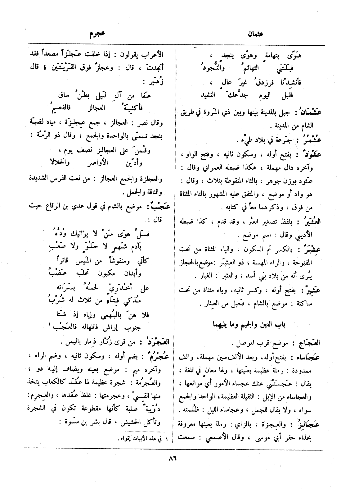 وقال نصر: العجالز، جمع عجلزة، مياه لضبّة بنجد تسمّى بالواحدة والجمع، وقال ذو الرّمّة: