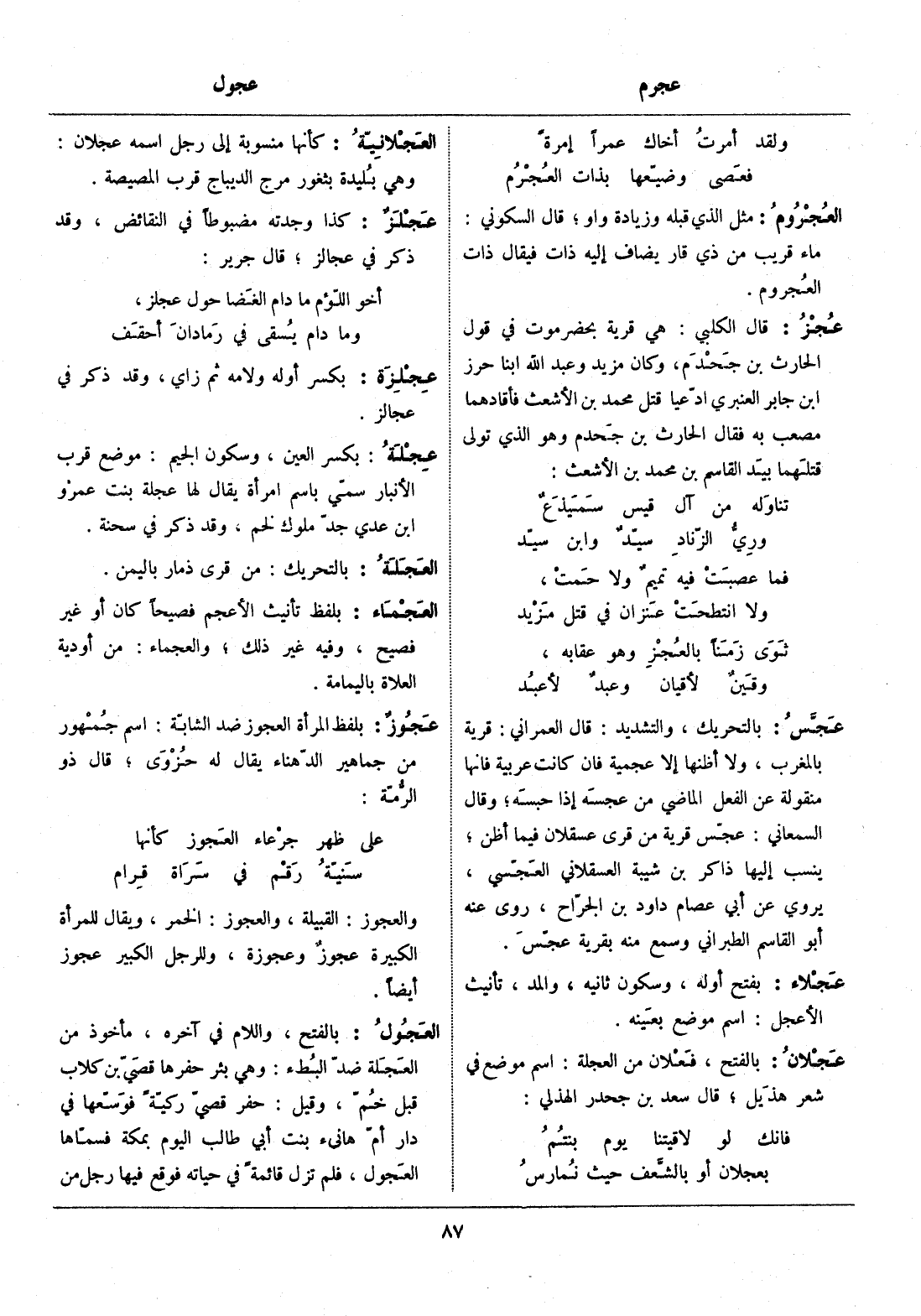 كذا وجدته مضبوطا في النقائض، وقد ذكر في عجالز، قال جرير: