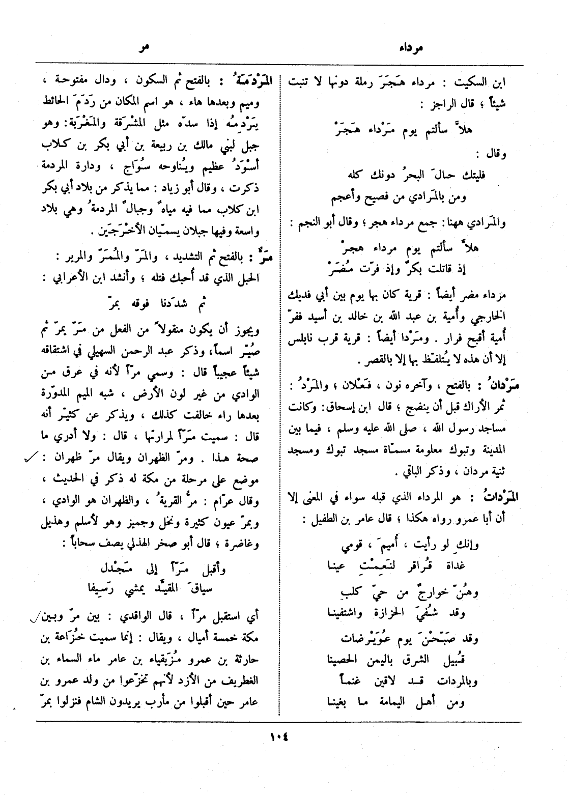 مرداء مضر أيضا: قرية كان بها يوم بين أبي فديك الخارجي وأمية بن عبد الله بن خالد بن أسيد ففرّ أمية أقبح فرار. ومردا أيضا: قرية قرب نابلس إلا أن هذه لا يتلفّظ بها إلا بالقصر.