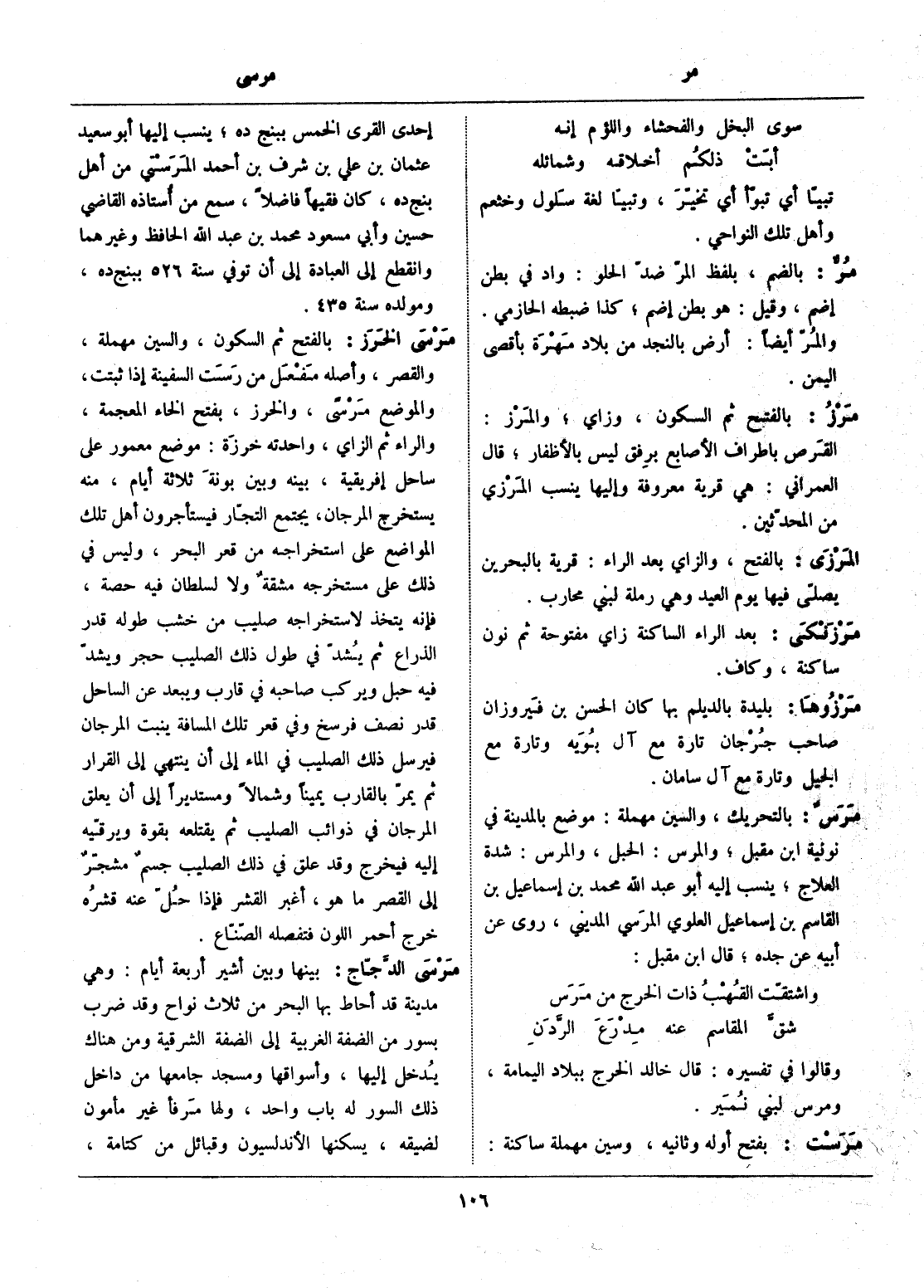 وقالوا في تفسيره: قال خالد الخرج ببلاد اليمامة، ومرس لبني نمير.
