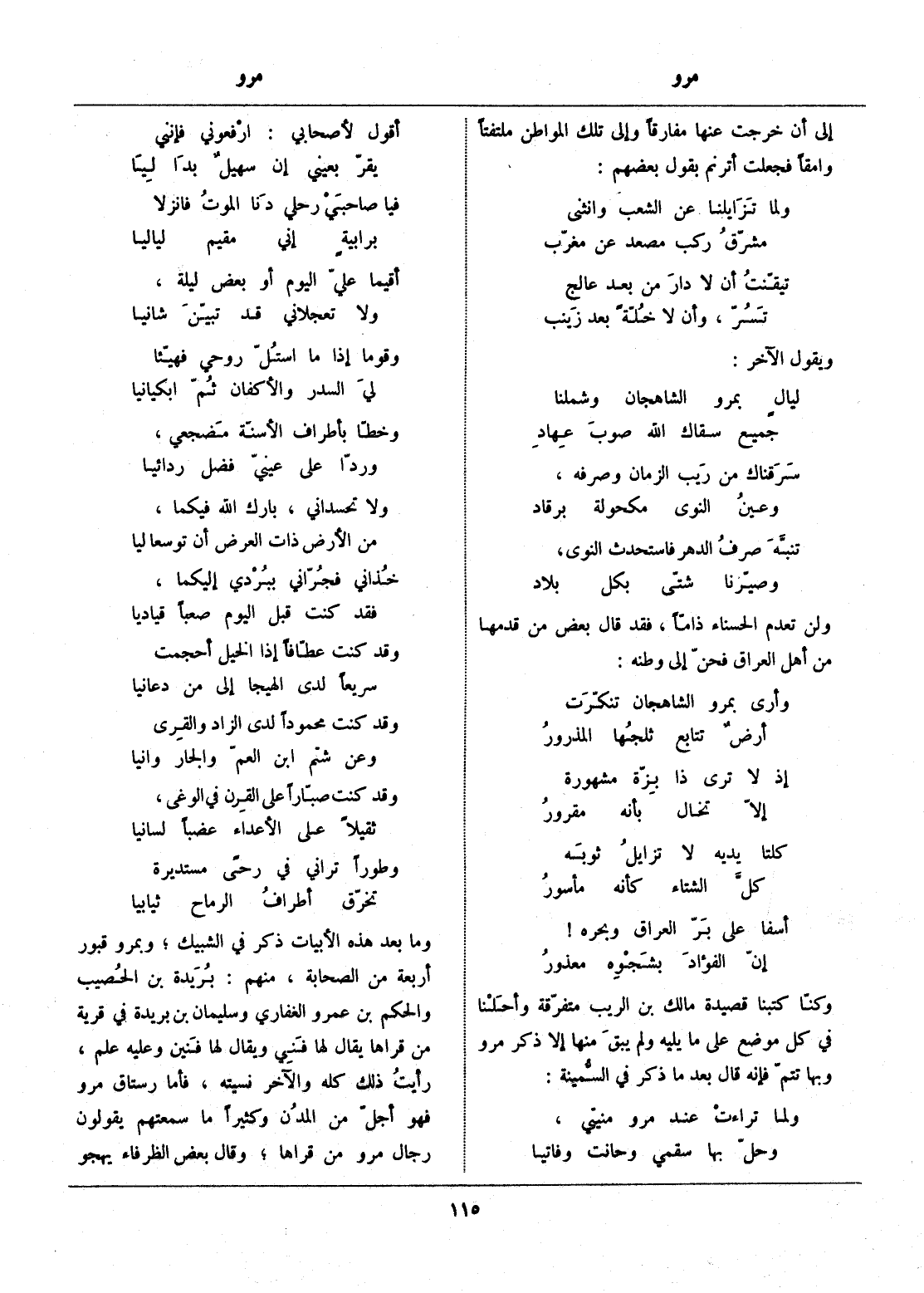 وكنّا كتبنا قصيدة مالك بن الريب متفرّقة وأحلنا في كل موضع على ما يليه ولم يبق منها إلا ذكر مرو وبها تتمّ فإنه قال بعد ما ذكر في السّمينة: