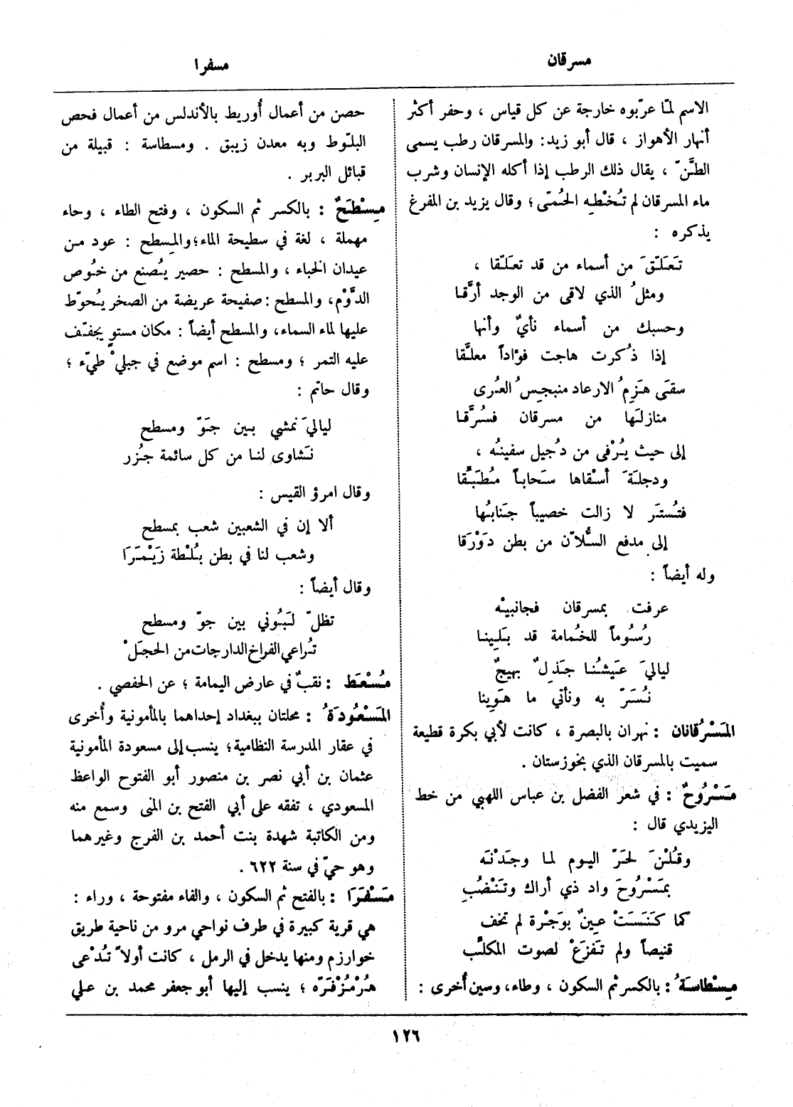 الاسم لمّا عرّبوه خارجة عن كل قياس، وحفر أكثر أنهار الأهواز، قال أبو زيد: والمسرقان رطب يسمى الطّنّ، يقال ذلك الرطب إذا أكله الإنسان وشرب ماء المسرقان لم تخطه الحمّى، وقال يزيد بن المفرغ يذكره: