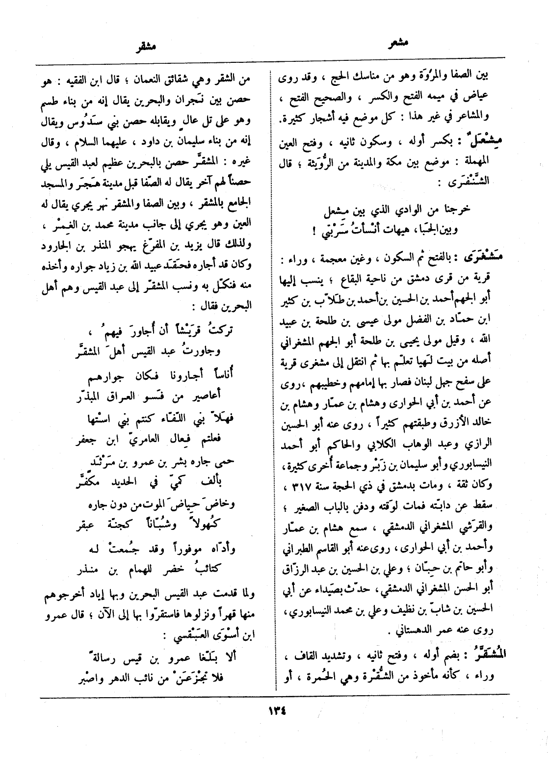 قرية من قرى دمشق من ناحية البقاع، ينسب إليها أبو الجهم أحمد بن الحسين بن أحمد بن طلّاب بن كثير ابن حمّاد بن الفضل مولى عيسى بن طلحة بن عبيد الله، وقيل مولى يحيى بن طلحة أبو الجهم المشغراني أصله من بيت لهيا تعلّم بها ثم انتقل إلى مشغرى قرية على سفح جبل لبنان فصار بها إمامهم وخطيبهم، روى عن أحمد بن أبي الحوارى وهشام بن عمّار وهشام بن خالد الأزرق وطبقتهم كثيرا، روى عنه أبو الحسين الرازي وعبد الوهاب الكلابي والحاكم أبو أحمد النيسابوري وأبو سليمان بن زبر وجماعة أخرى كثيرة، وكان ثقة، ومات بدمشق في ذي الحجة سنة 317، سقط عن دابّته فمات لوقته ودفن بالباب الصغير، والقرشي المشغراني الدمشقي، سمع هشام بن عمّار وأحمد بن أبي الحواري، روى عنه أبو القاسم الطبراني وأبو حاتم بن حبّان، وعلي بن الحسين بن عبد الرزّاق أبو الحسن المشغراني الدمشقي، حدّث بصيداء عن أبي الحسين بن شابّ بن نظيف وعلي بن محمد النيسابوري، روى عنه عمر الدهستاني.