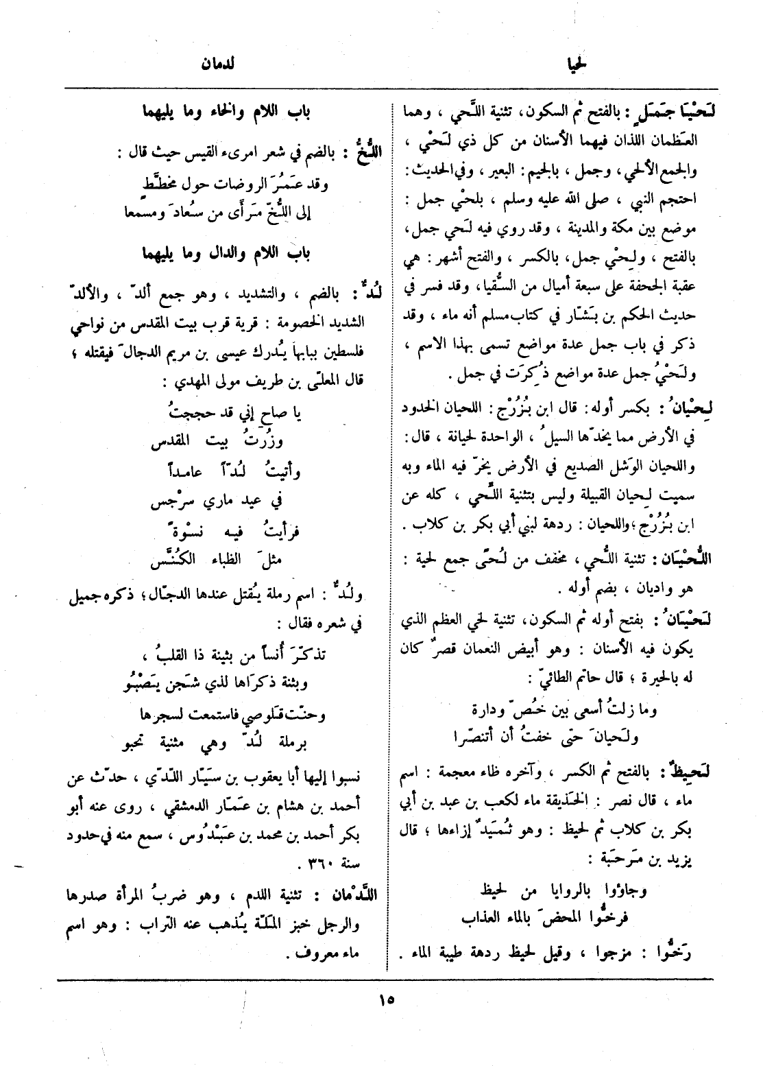 واللحيان الوشل الصديع في الأرض يخرّ فيه الماء وبه سميت لحيان القبيلة وليس بتثنية اللّحي، كله عن ابن بزرج، واللحيان: ردهة لبني أبي بكر بن كلاب.