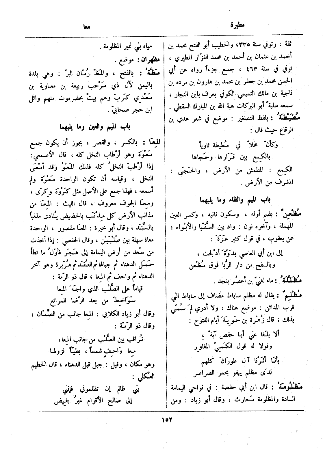 وقال أبو زياد الكلابي: المعا جانب من الصّمّان، وقال ذو الرّمّة: