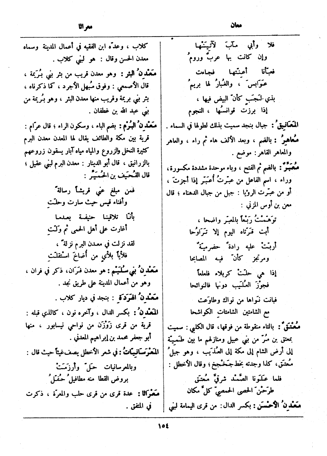 وبالمعرسانيات حلّ وأرزمت ... بروض القطا منه مطافيل حفّل