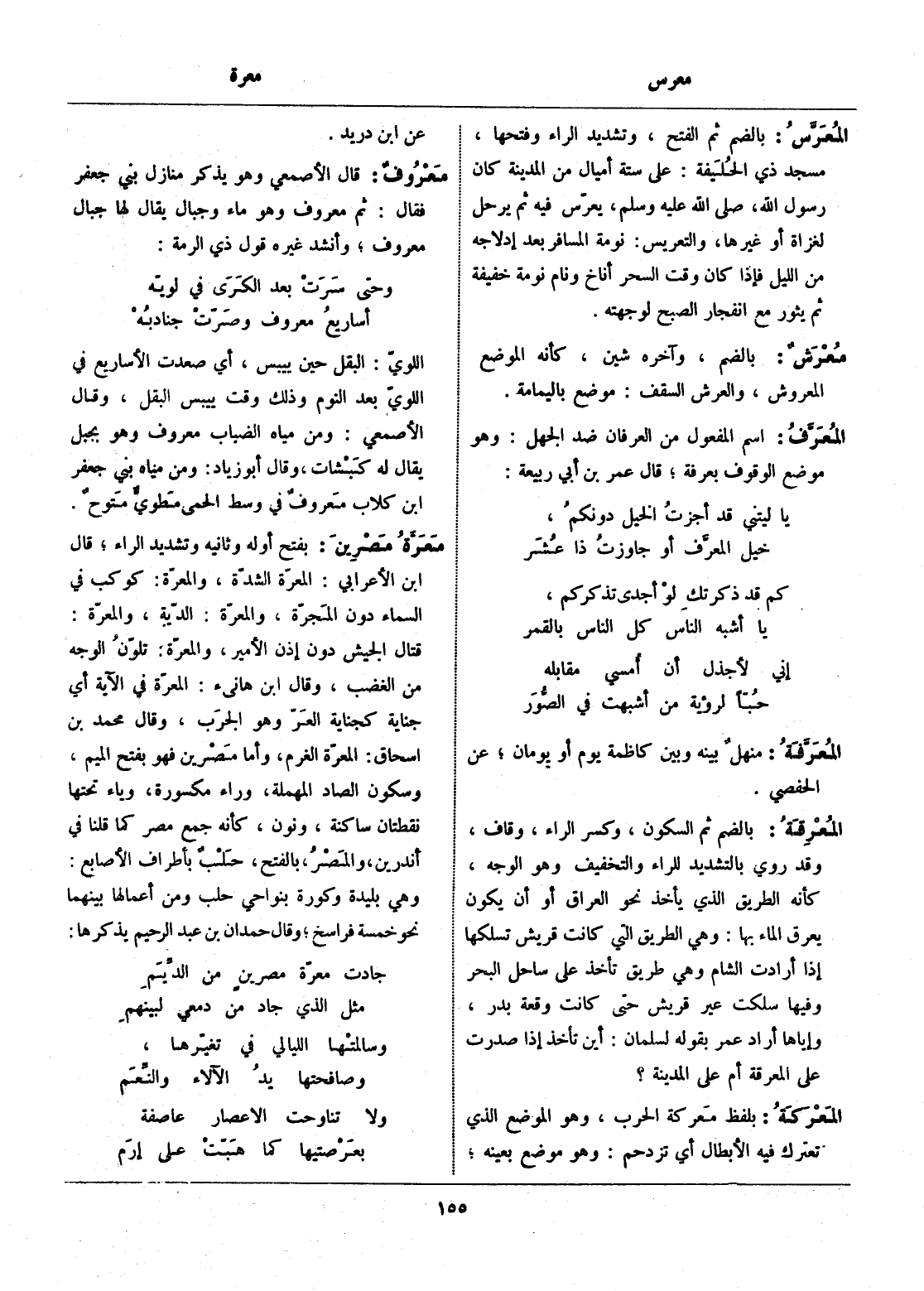 قال الأصمعي وهو يذكر منازل بني جعفر فقال: ثم معروف وهو ماء وجبال يقال لها جبال معروف، وأنشد غيره قول ذي الرمة: