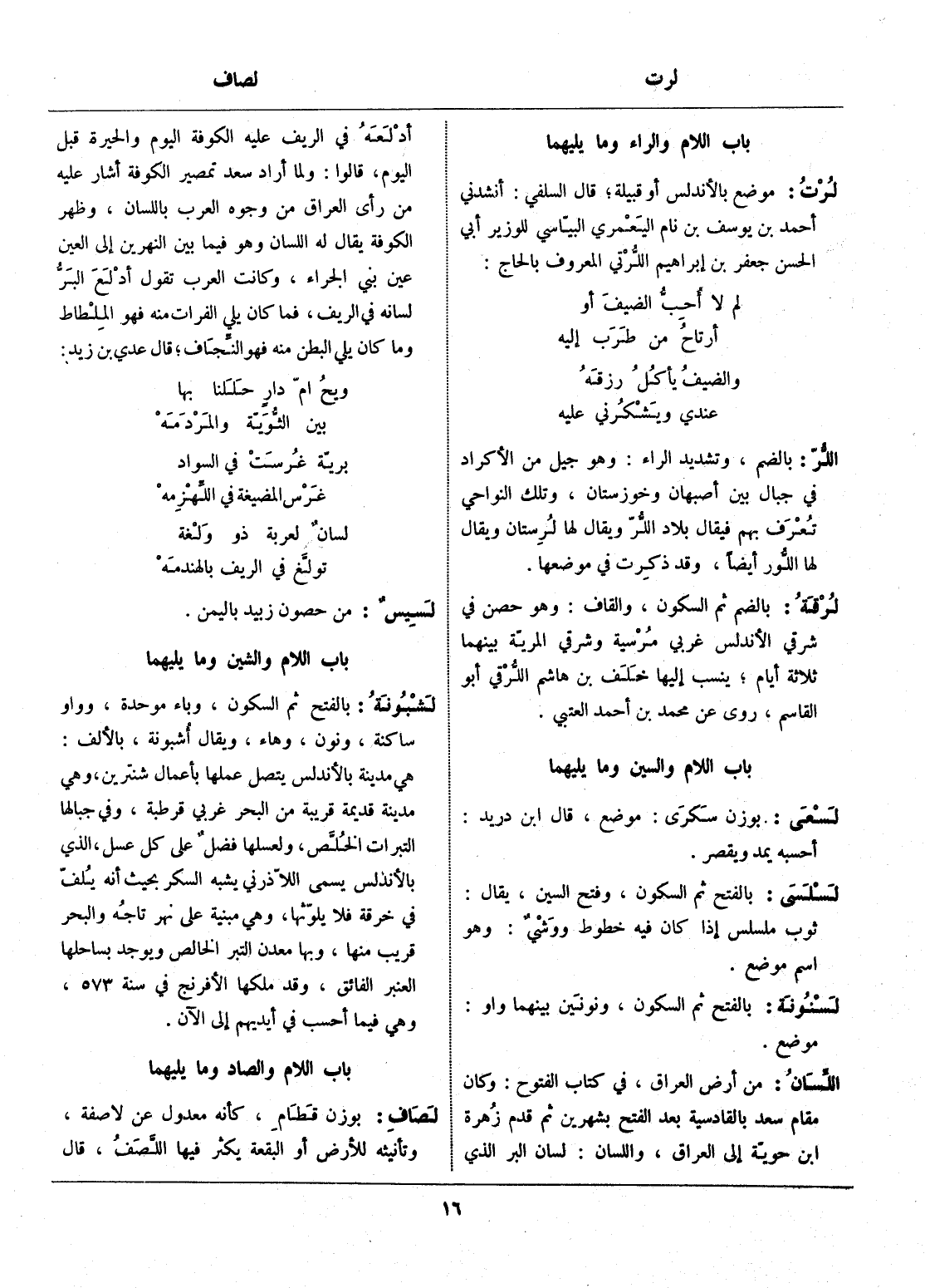 من أرض العراق، في كتاب الفتوح: وكان مقام سعد بالقادسية بعد الفتح بشهرين ثم قدم زهرة ابن حويّة إلى العراق، واللسان: لسان البر الذي أدلعه في الريف عليه الكوفة اليوم والحيرة قبل اليوم، قالوا: ولما أراد سعد تمصير الكوفة أشار عليه من رأى العراق من وجوه العرب باللسان، وظهر الكوفة يقال له اللسان وهو فيما بين النهرين إلى العين عين بني الجراء، وكانت العرب تقول أدلع البرّ لسانه في الريف، فما كان يلي الفرات منه فهو الملطاط وما كان يلي البطن منه فهو النّجاف، قال عدي بن زيد: