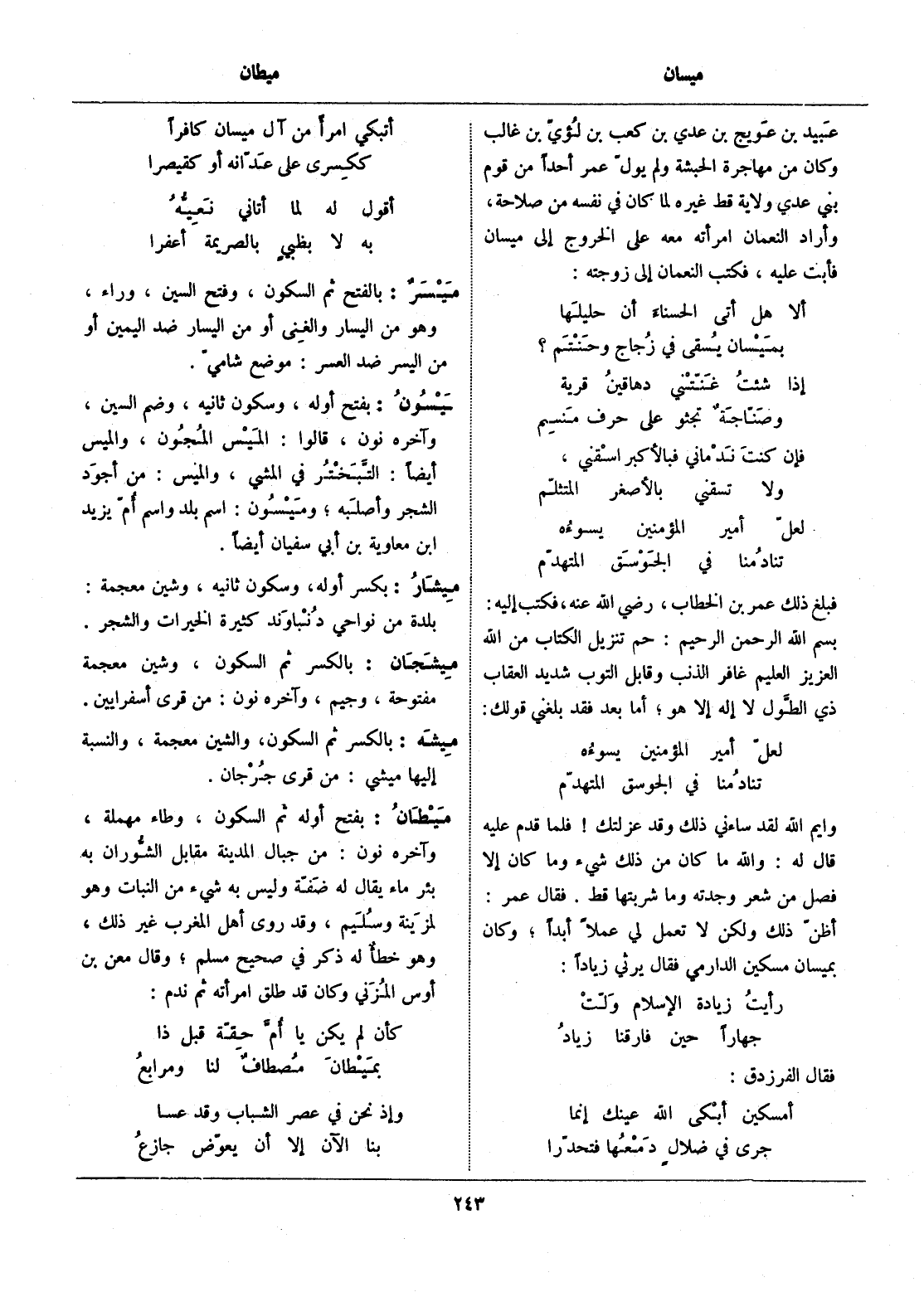 أظنّ ذلك ولكن لا تعمل لي عملا أبدا، وكان بميسان مسكين الدارمي فقال يرثي زيادا: