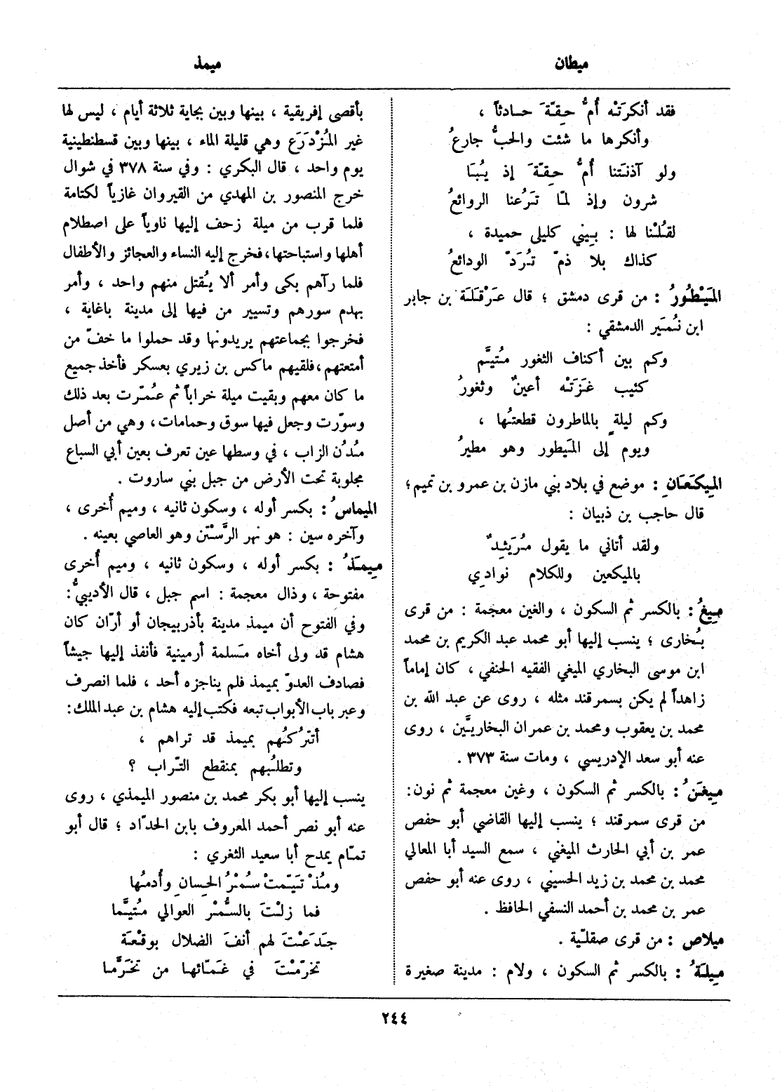 وفي الفتوح أن ميمذ مدينة بأذربيجان أو أرّان كان هشام قد ولى أخاه مسلمة أرمينية فأنفذ إليها جيشا فصادف العدوّ بميمذ فلم يناجزه أحد، فلما انصرف وعبر باب الأبواب تبعه فكتب إليه هشام بن عبد الملك: