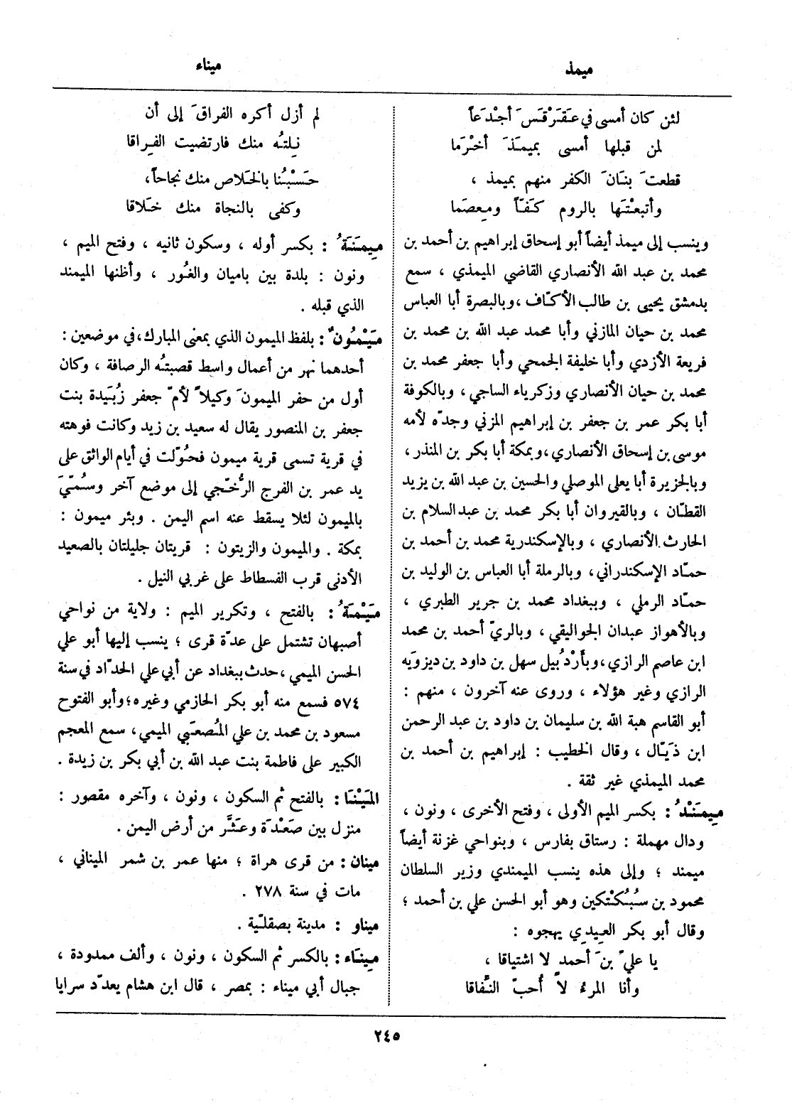 بالفتح، وتكرير الميم: ولاية من نواحي أصبهان تشتمل على عدّة قرى، ينسب إليها أبو علي الحسن الميمي، حدث ببغداد عن أبي علي الحدّاد في سنة 574 فسمع منه أبو بكر الحازمي وغيره، وأبو الفتوح مسعود بن محمد بن علي المصعبي الميمي، سمع المعجم الكبير على فاطمة بنت عبد الله بن أبي بكر بن زيدة.