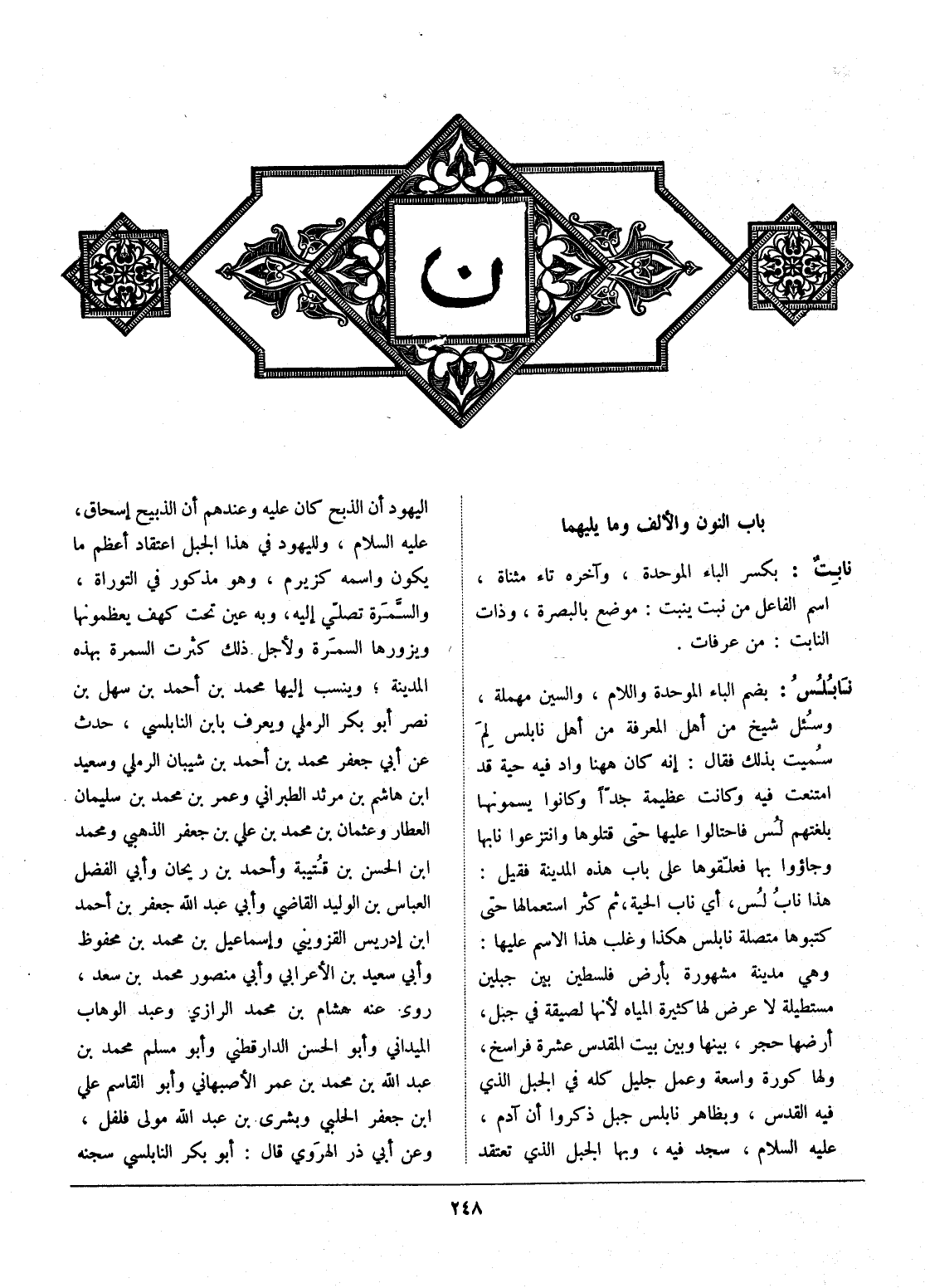 هذا ناب لس، أي ناب الحية، ثم كثر استعمالها حتى كتبوها متصلة نابلس هكذا وغلب هذا الاسم عليها: