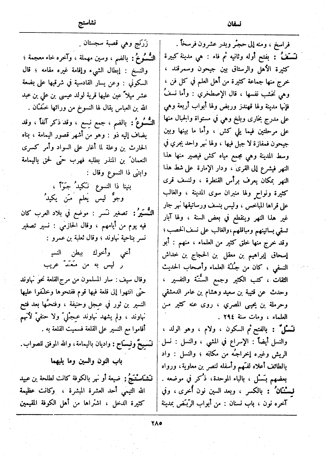 بالضم، وسين مهملة، وآخره خاء معجمة، والنسخ: إبطال الشيء وإقامة غيره مقامه، قال السكوني: وعن يسار القادسية في شرقيها على بضعة عشر ميلا عين عليها قرية لولد عيسى بن علي بن عبد الله بن العباس يقال لها النسوخ من ورائها خفّان.
