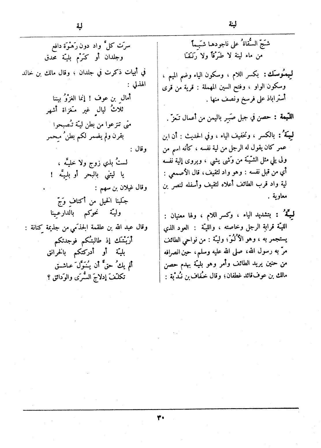 لية واد قرب الطائف أعلاه لثقيف وأسفله لنصر بن معاوية.