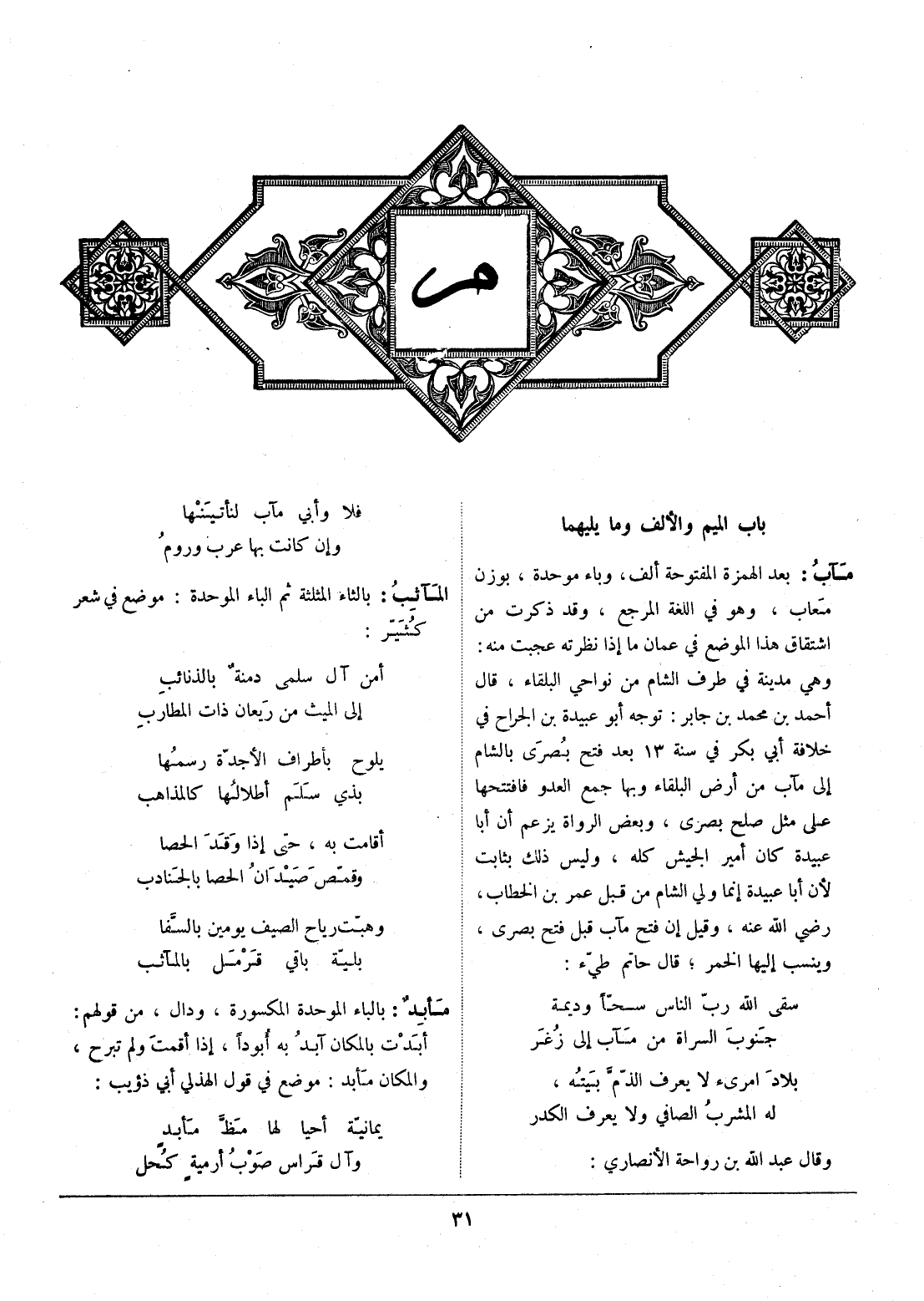 بعد الهمزة المفتوحة ألف، وباء موحدة، بوزن معاب، وهو في اللغة المرجع، وقد ذكرت من اشتقاق هذا الموضع في عمان ما إذا نظرته عجبت منه: