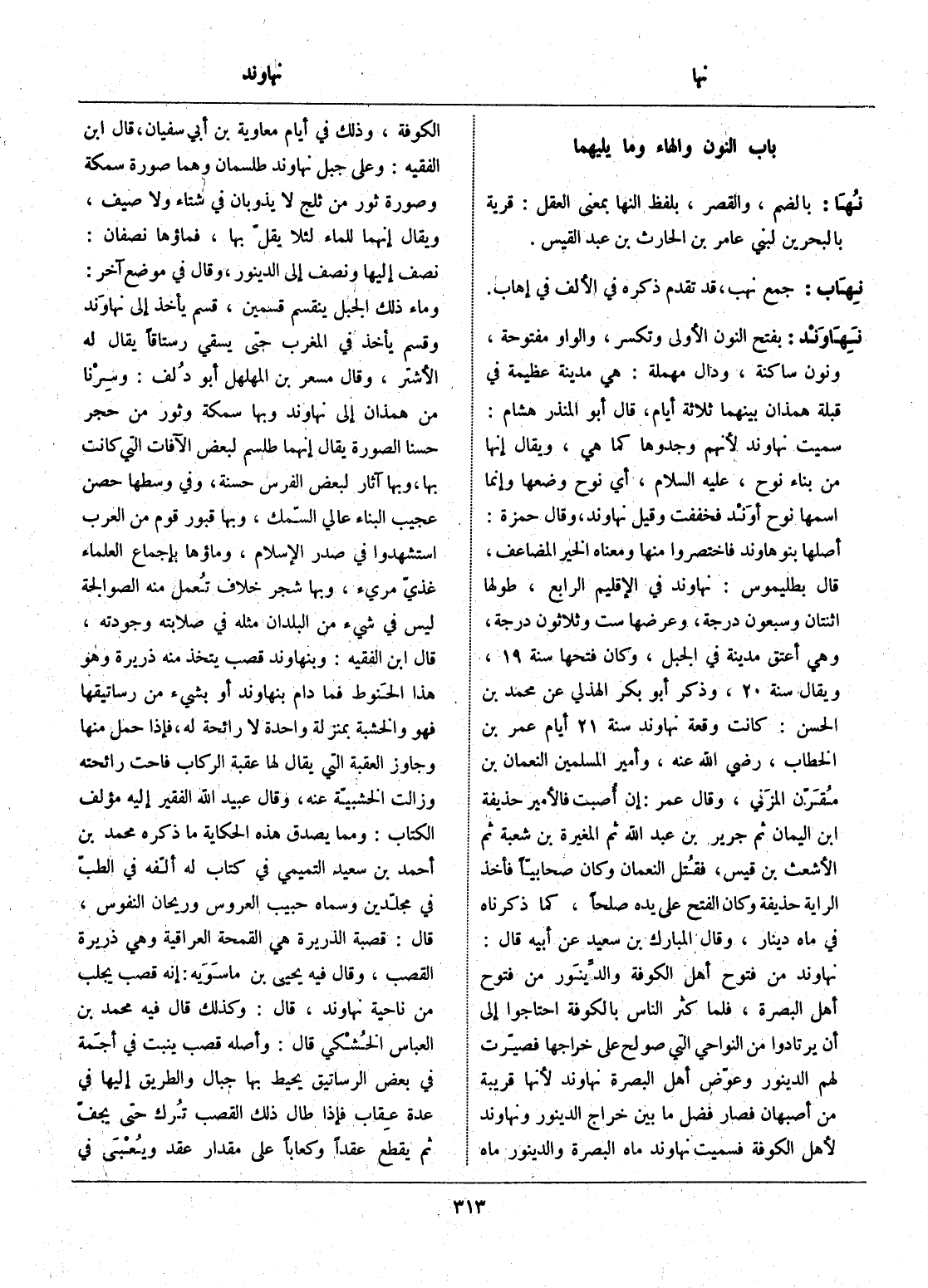 بفتح النون الأولى وتكسر، والواو مفتوحة، ونون ساكنة، ودال مهملة: هي مدينة عظيمة في قبلة همذان بينهما ثلاثة أيام، قال أبو المنذر هشام: