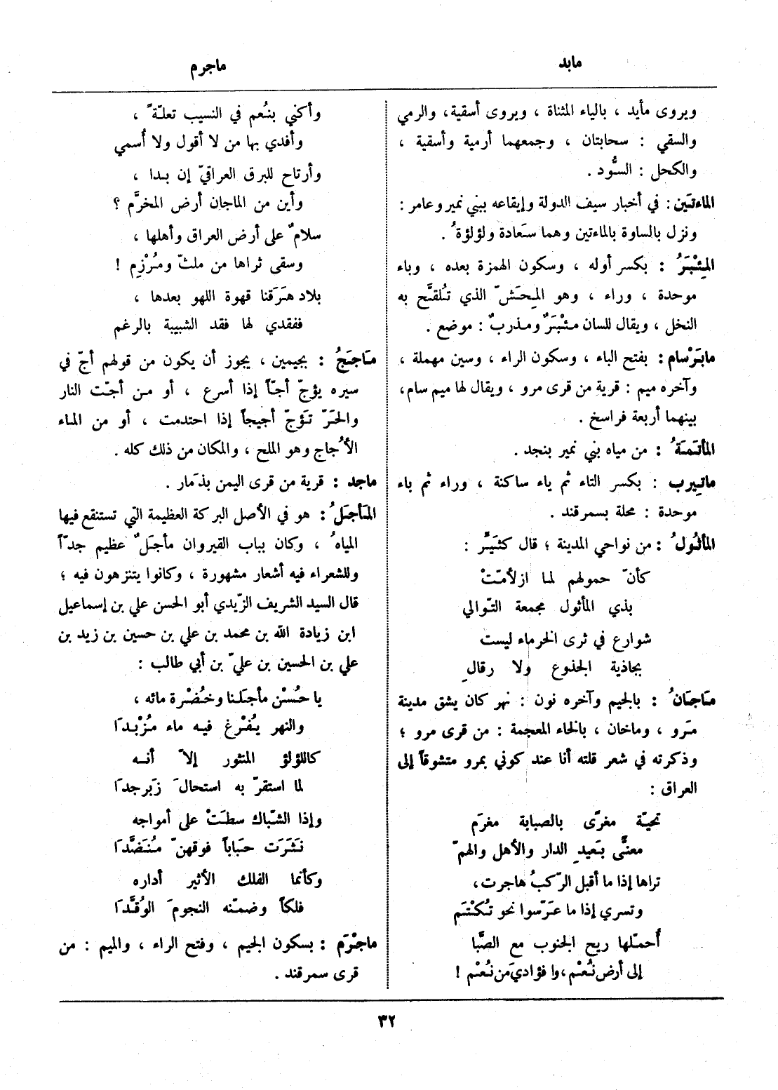 يا حسن مأجلنا وخضرة مائه، ... والنهر يفرغ فيه ماء مزبدا